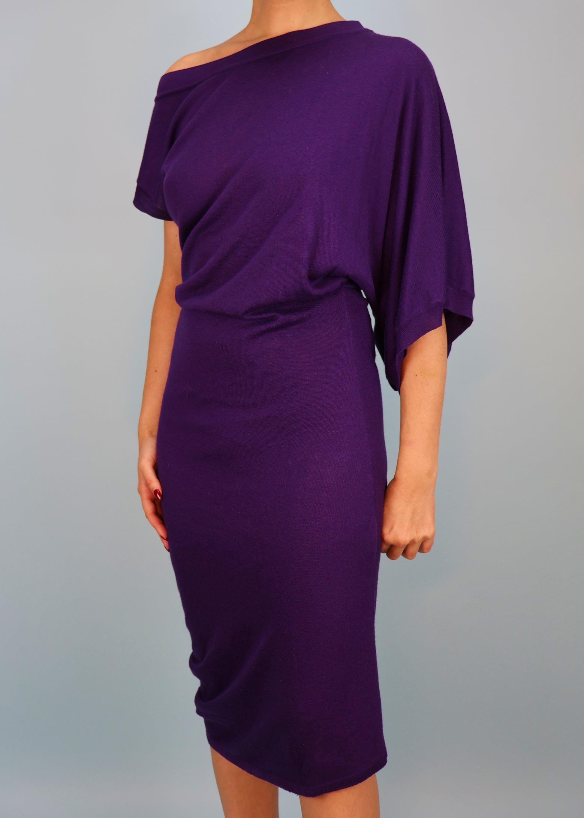 Purple knitted asymmetric neckline dress