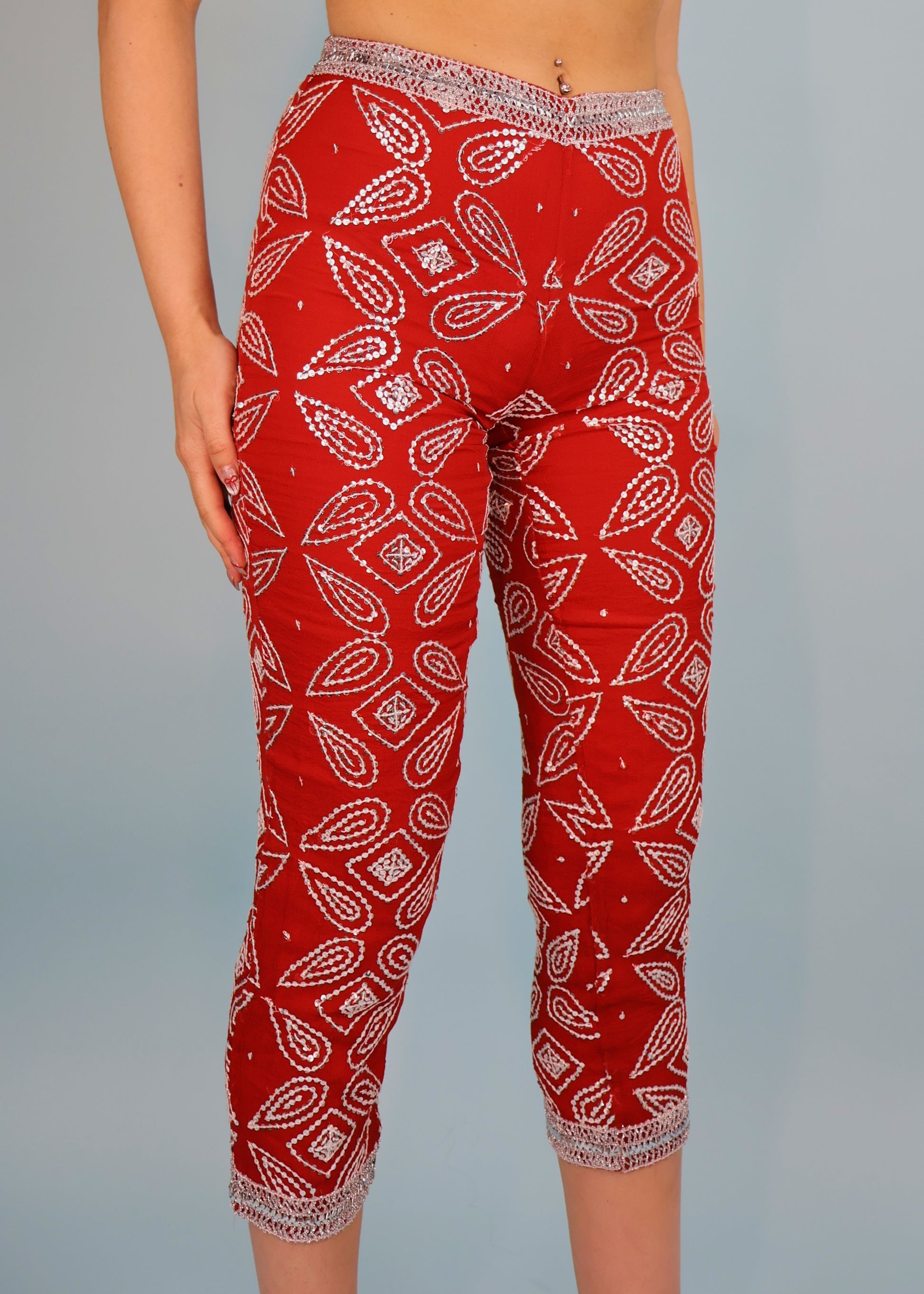 Blumarine Spring 2000 Runway Red Embellished Silk Capri Pants