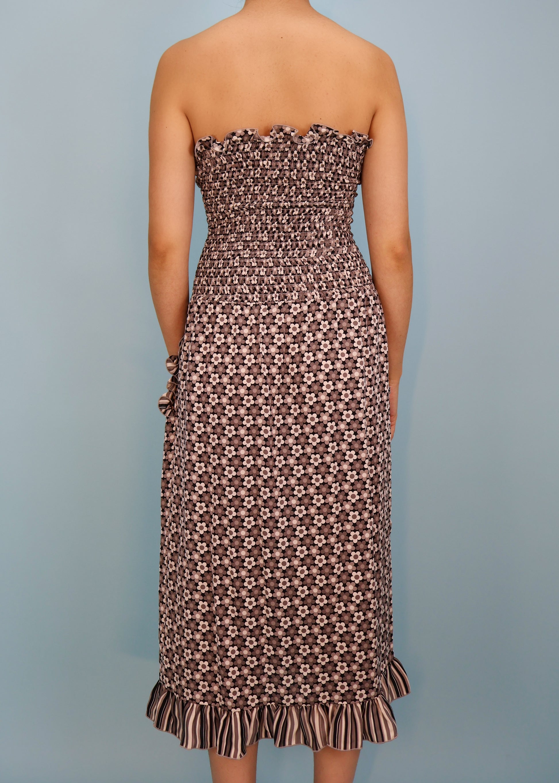 Celine Spring 2002 Floral Silk Shirred Strapless Dress