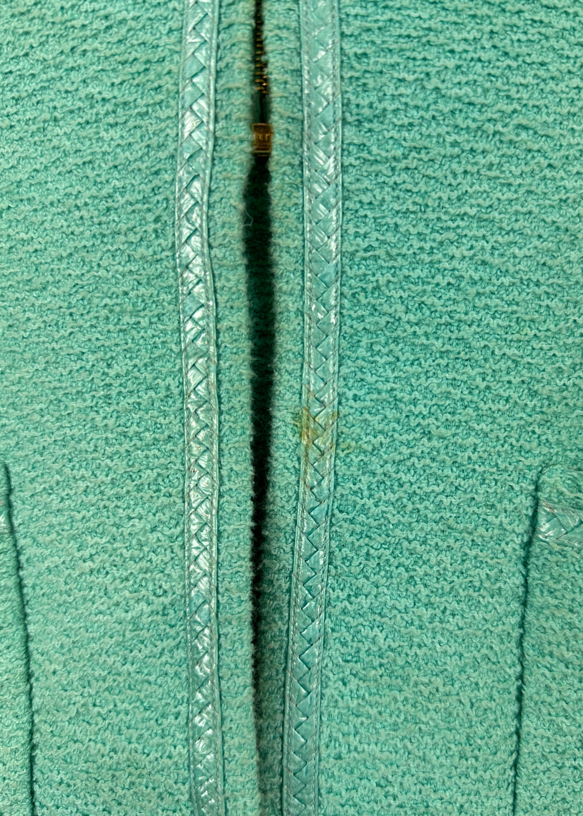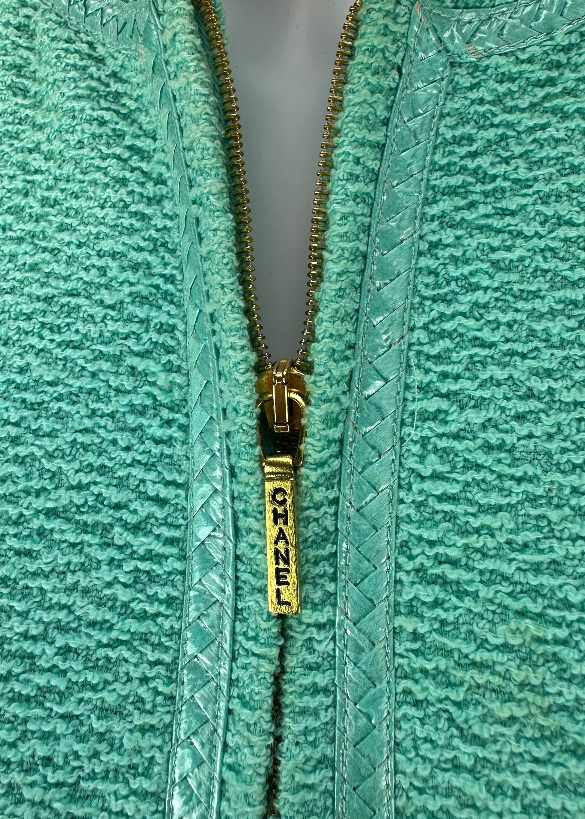 Chanel Spring 1995 Runway Blue Boucle Zip Jacket & Skirt Suit Set
