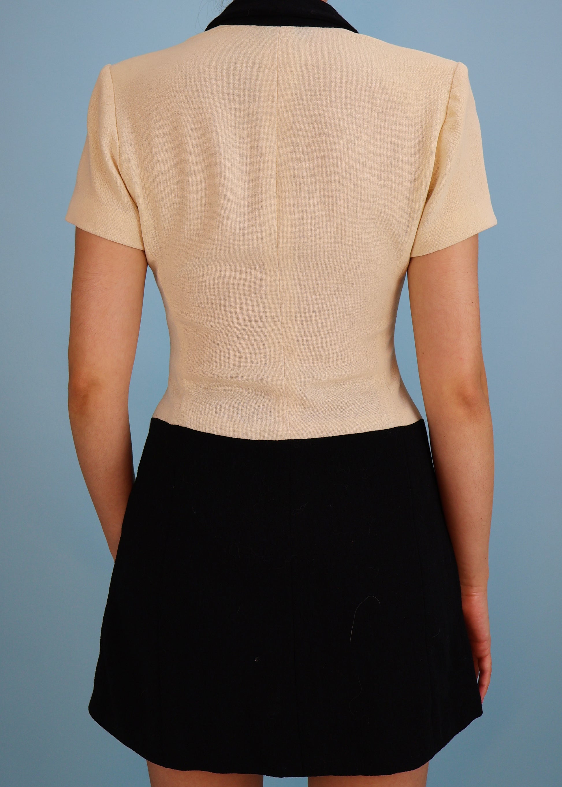 Cream and black zip down mini dress