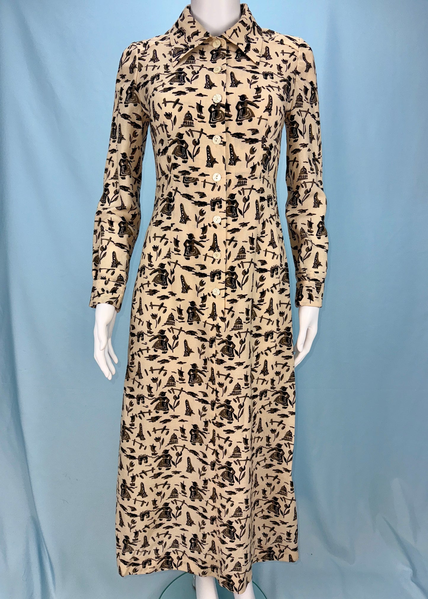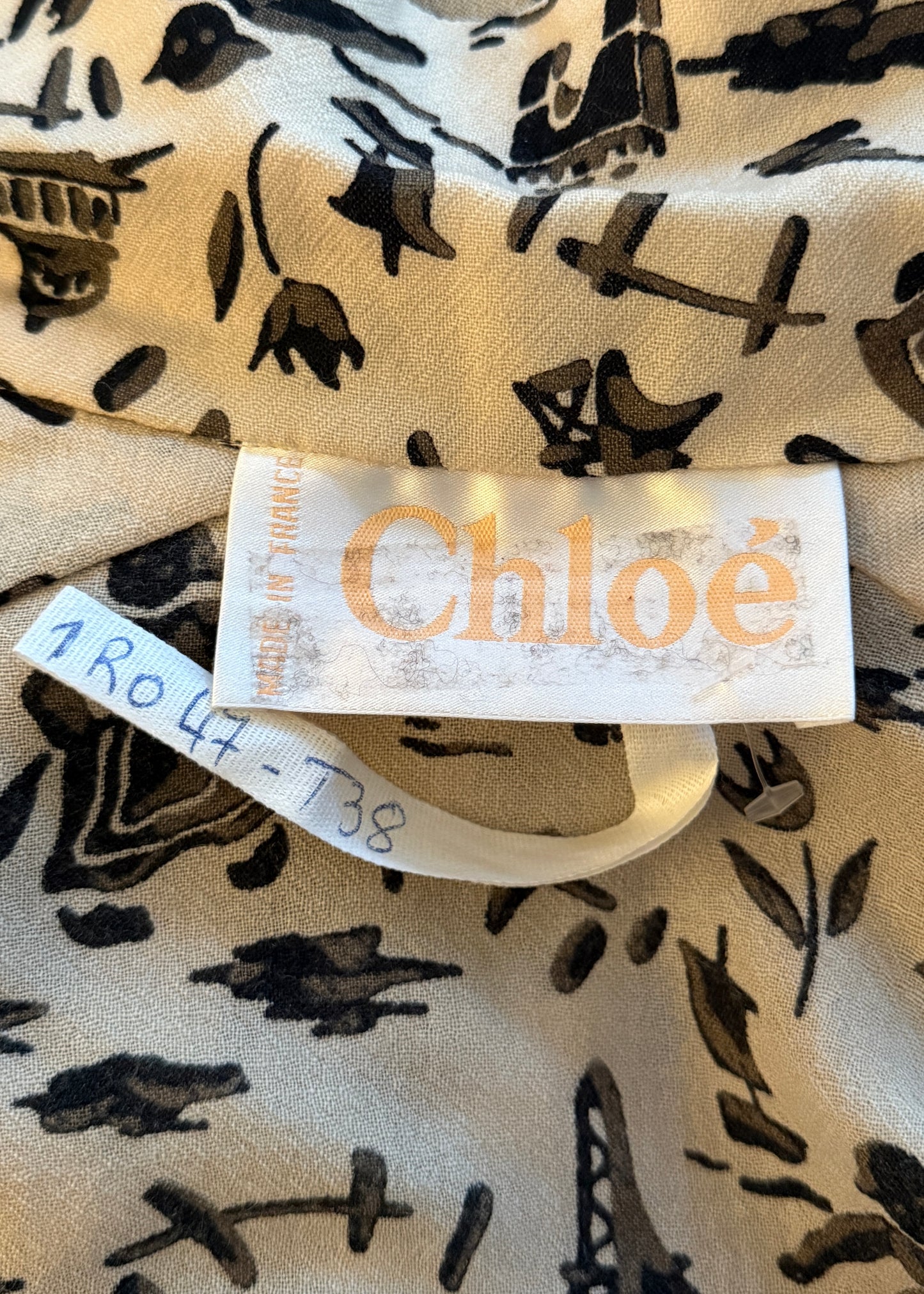 Chloé Fall 1996 Runway Paris Print Button Down Dress