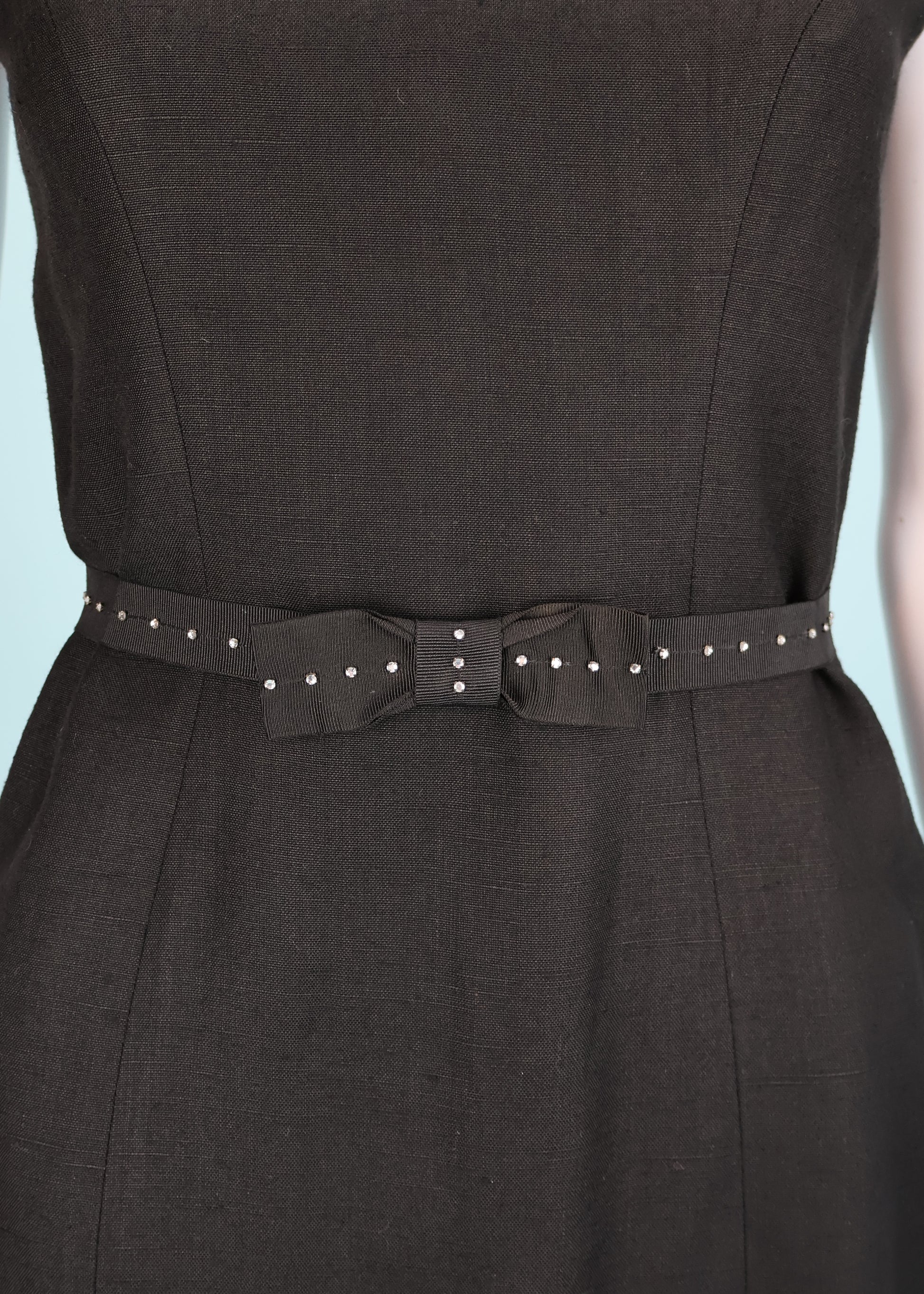 Black rhinestone bow ribbon belt