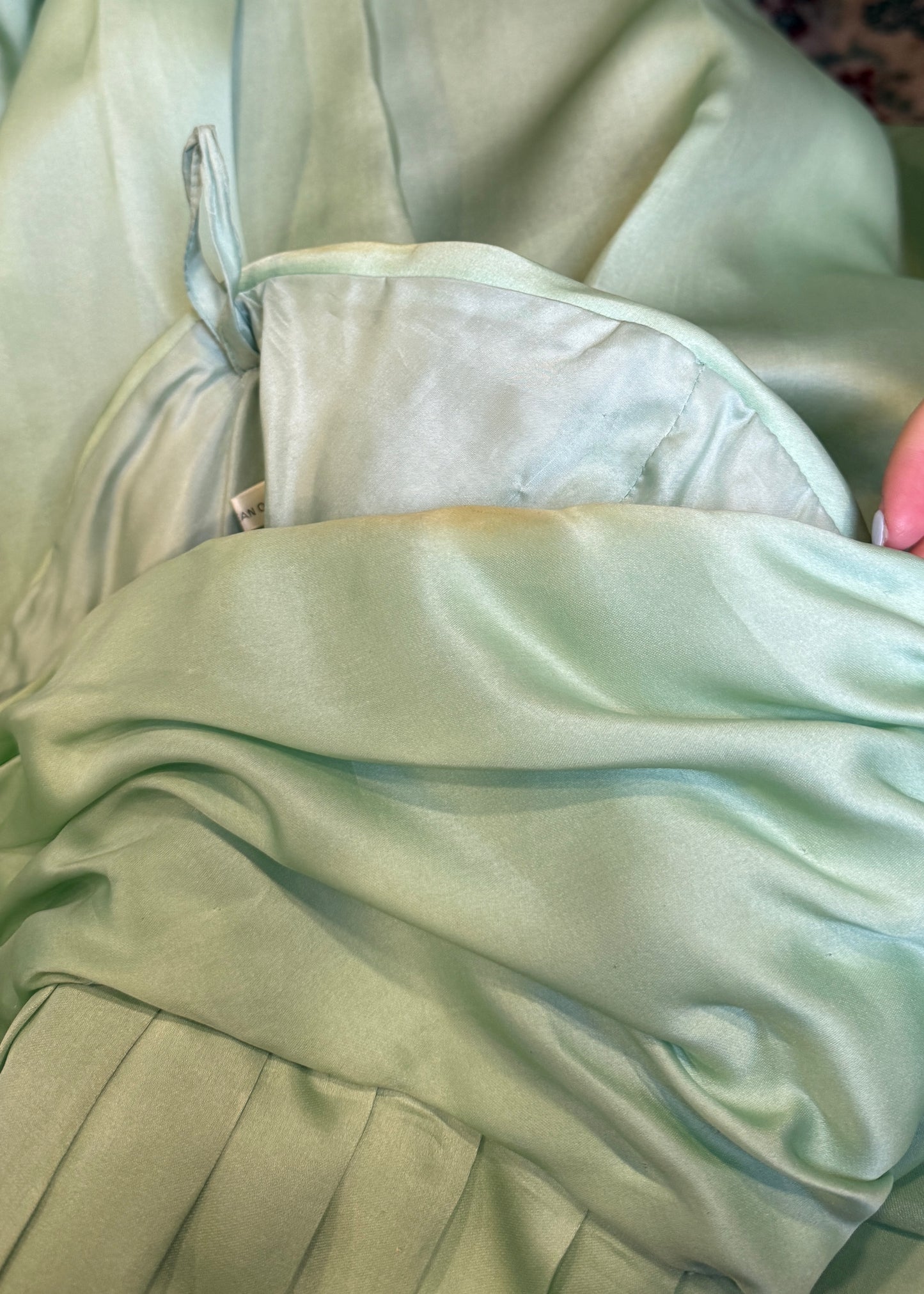 Mint green silk strapless gown