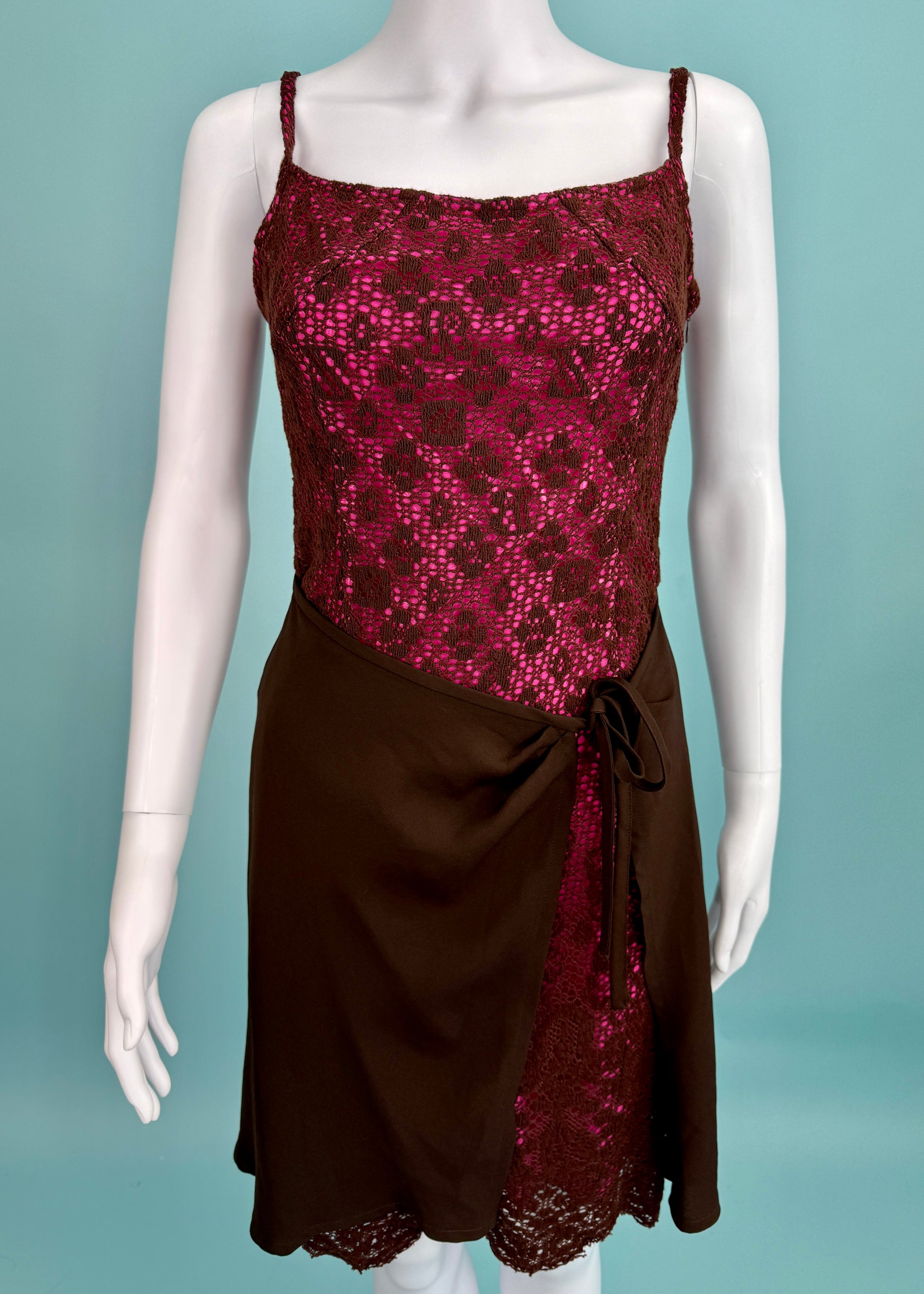 Christian Lacroix Bazar Pink & Brown Tie Up Detail Dress
