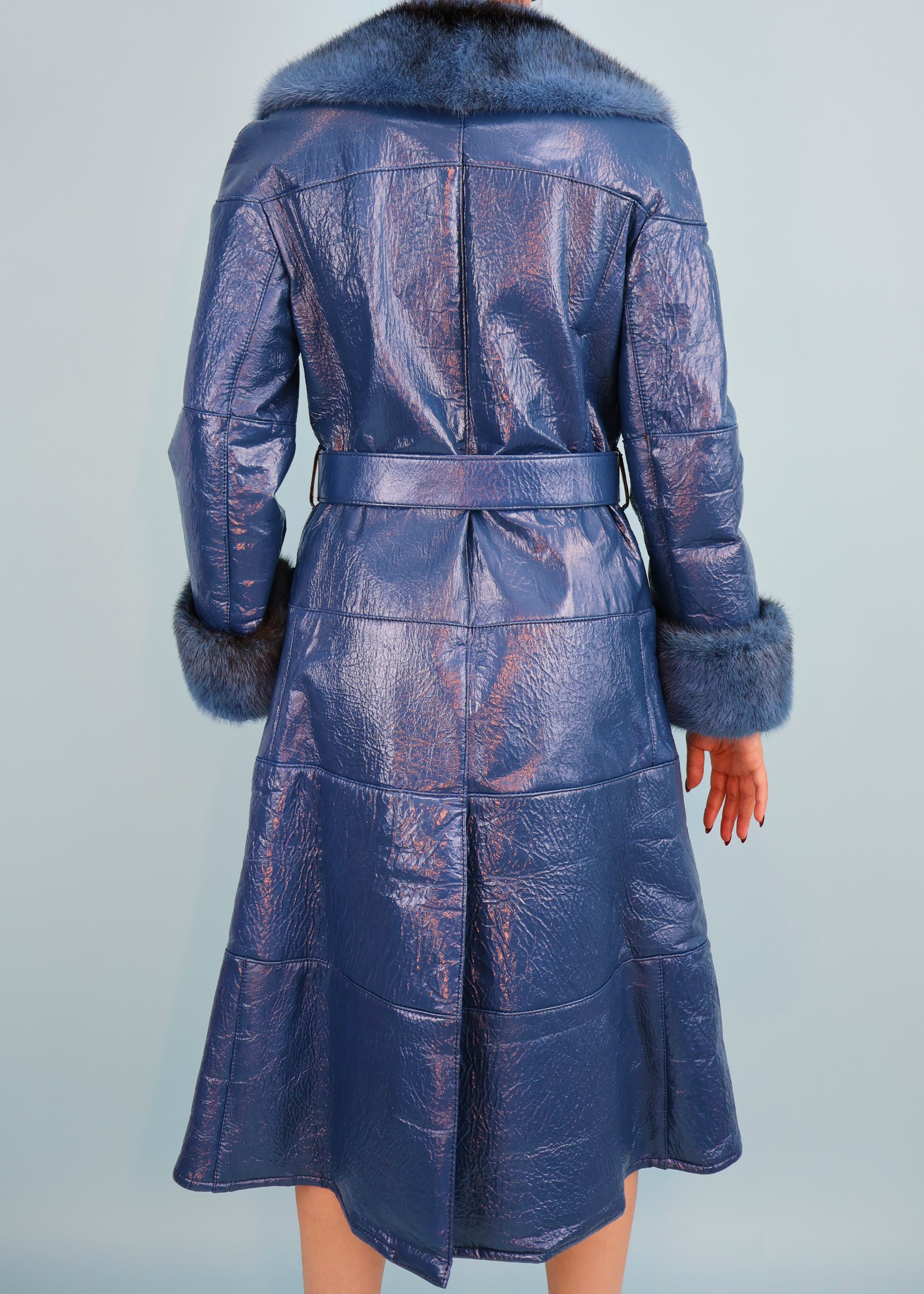 Dior 1970s Blue Vinyl Leather & Mink Fur Belted Coat