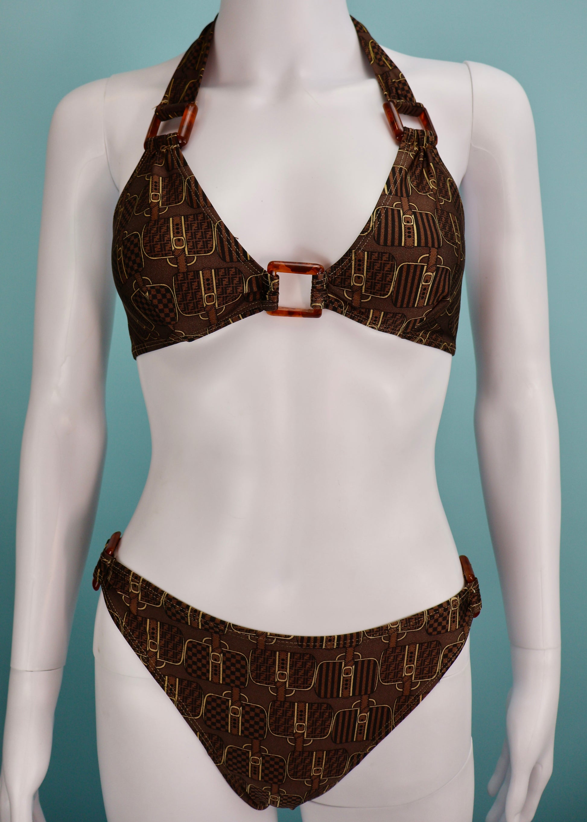 Fendi Bag Print Halter Bikini Set
