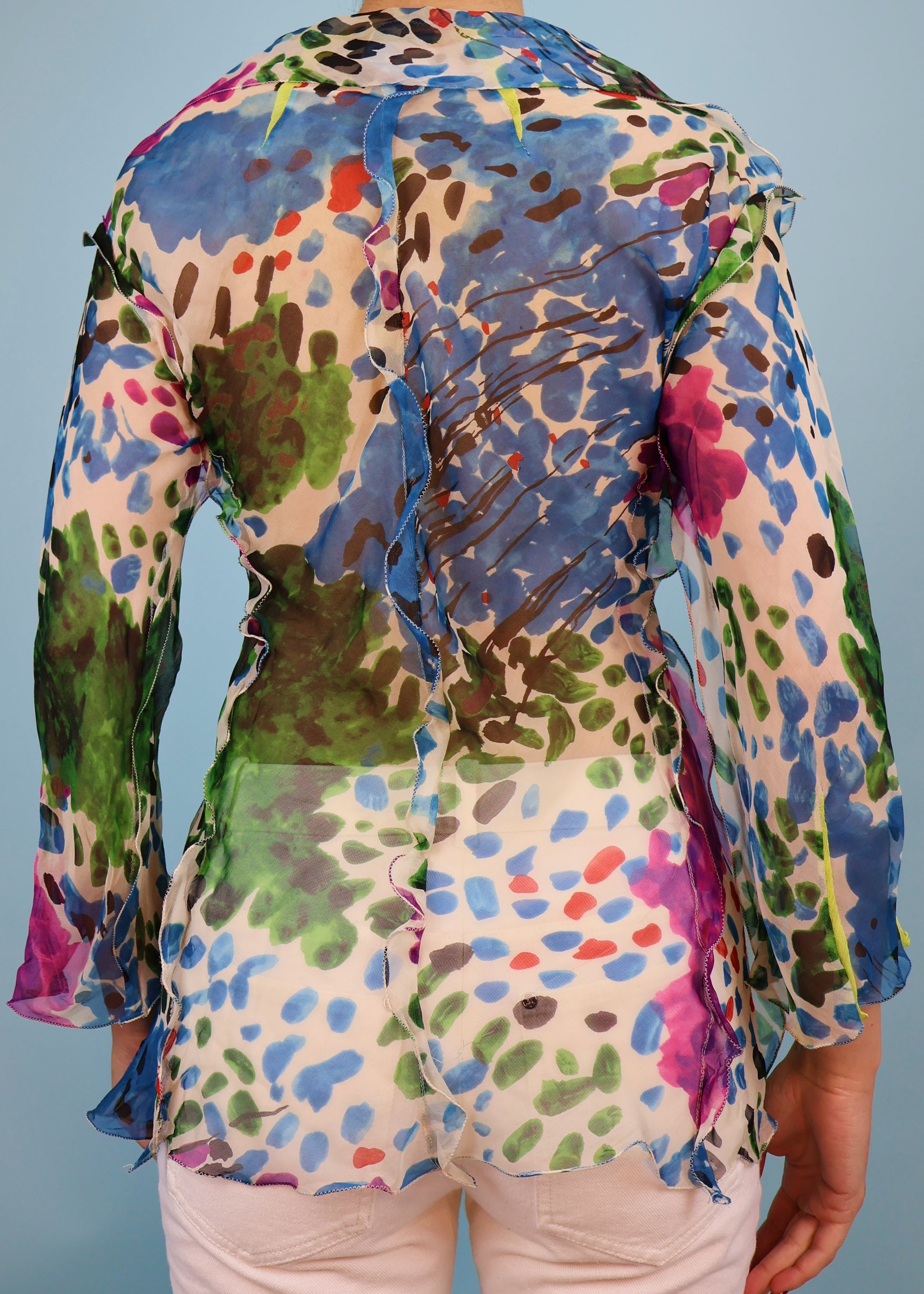 Fendi Spring 2000 Runway Watercolour Sheer Silk Blouse