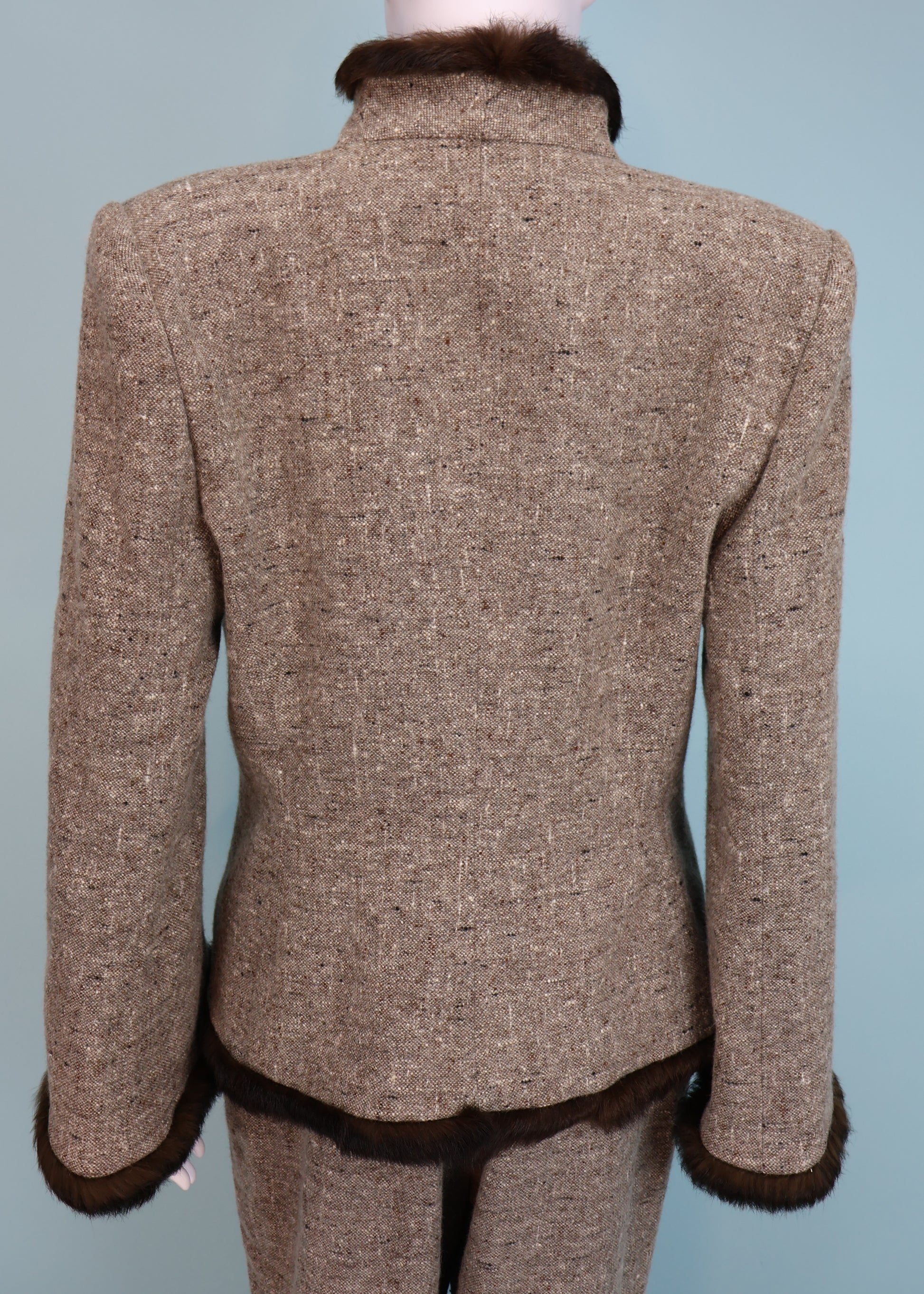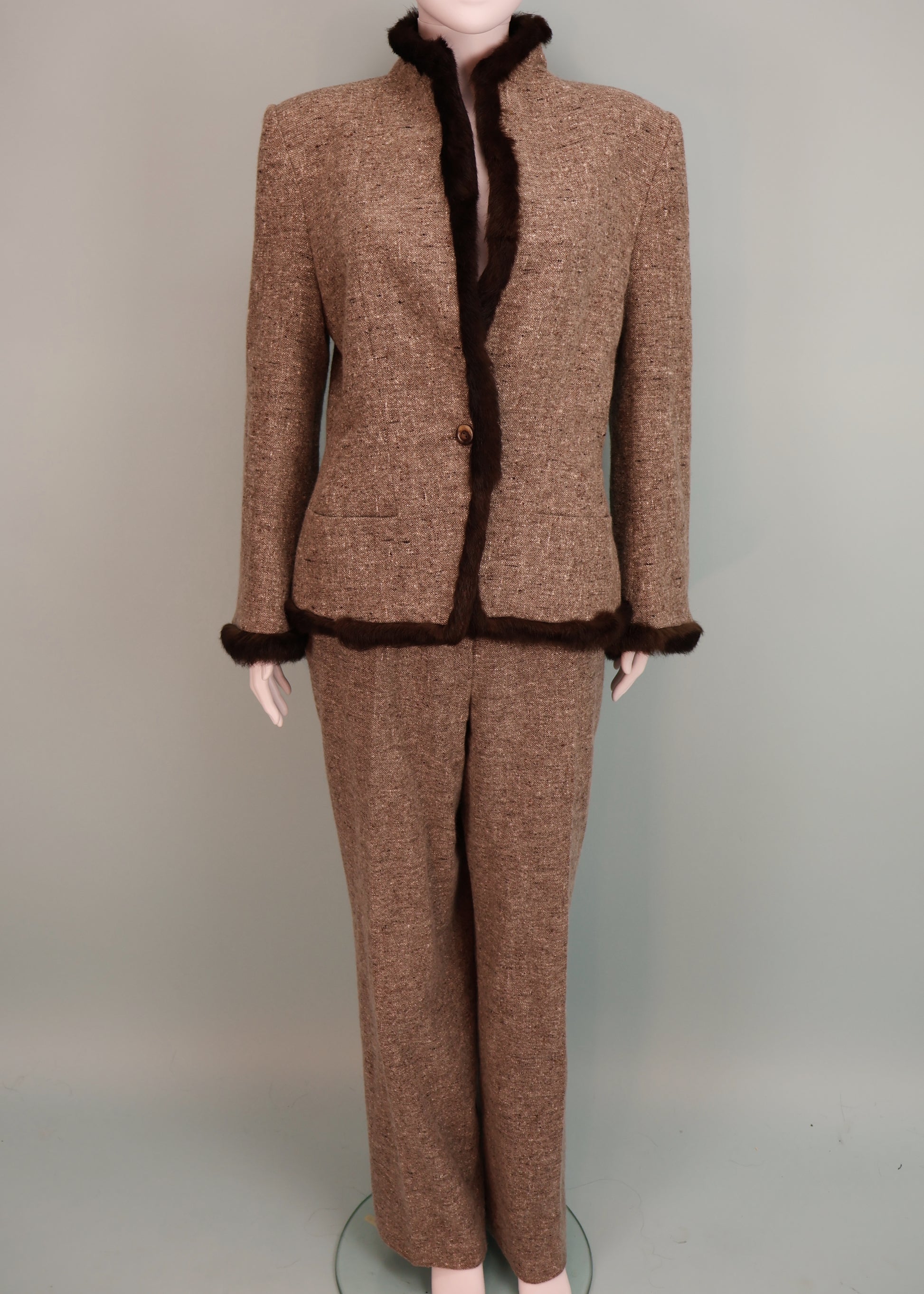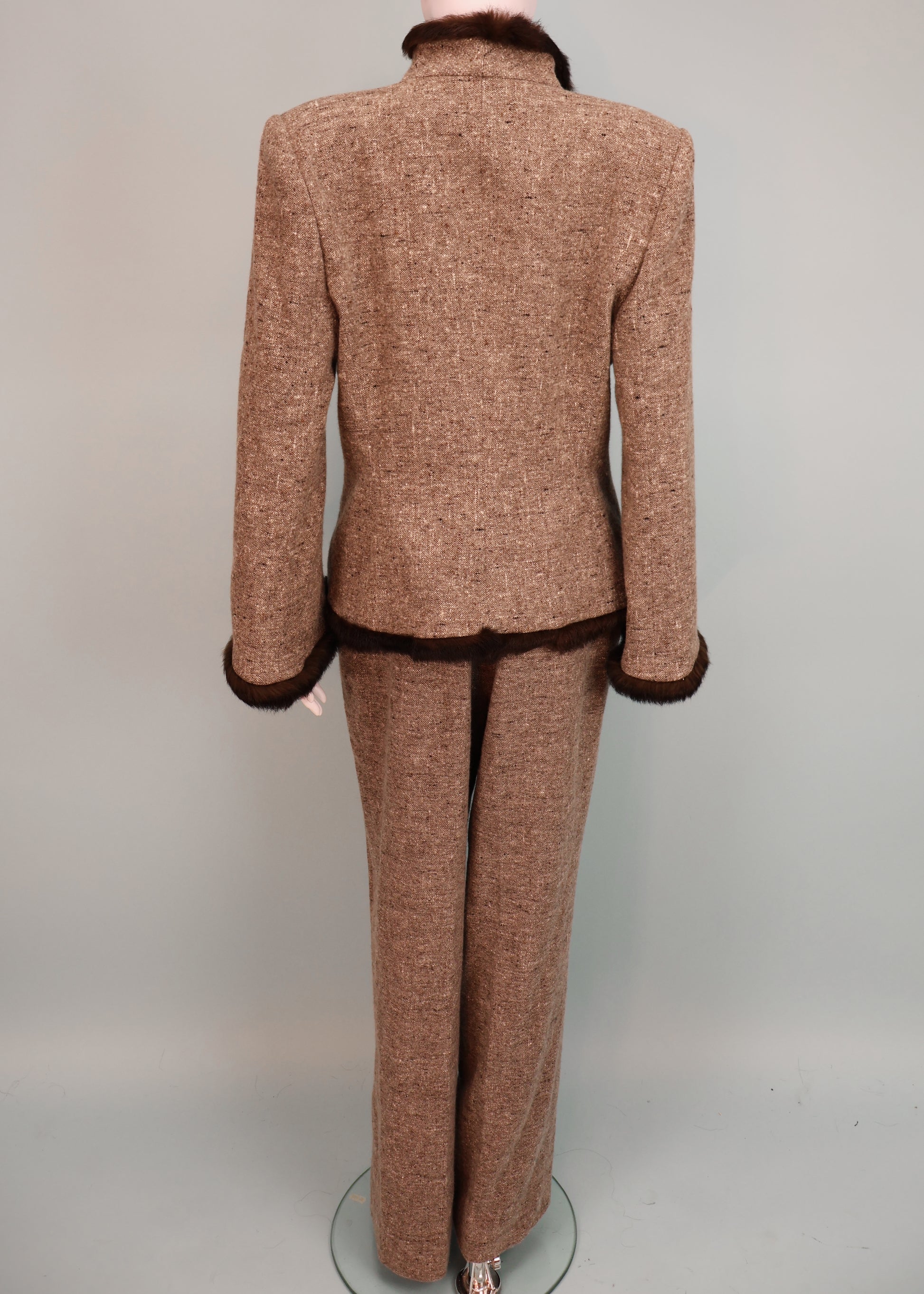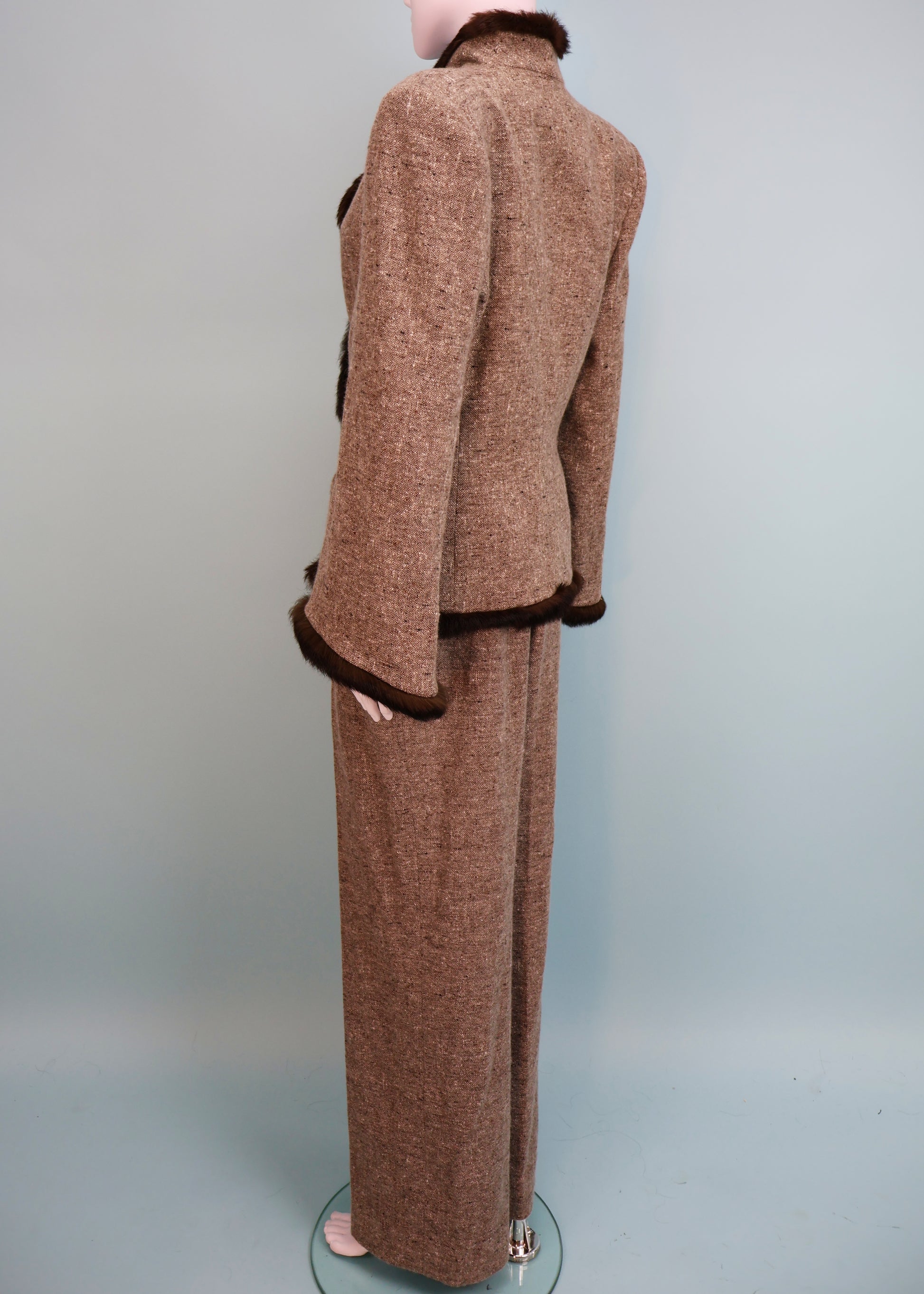 Givenchy by Alexander McQueen Fall 1998 Fur Trim Jacket & Pant Suit Set
