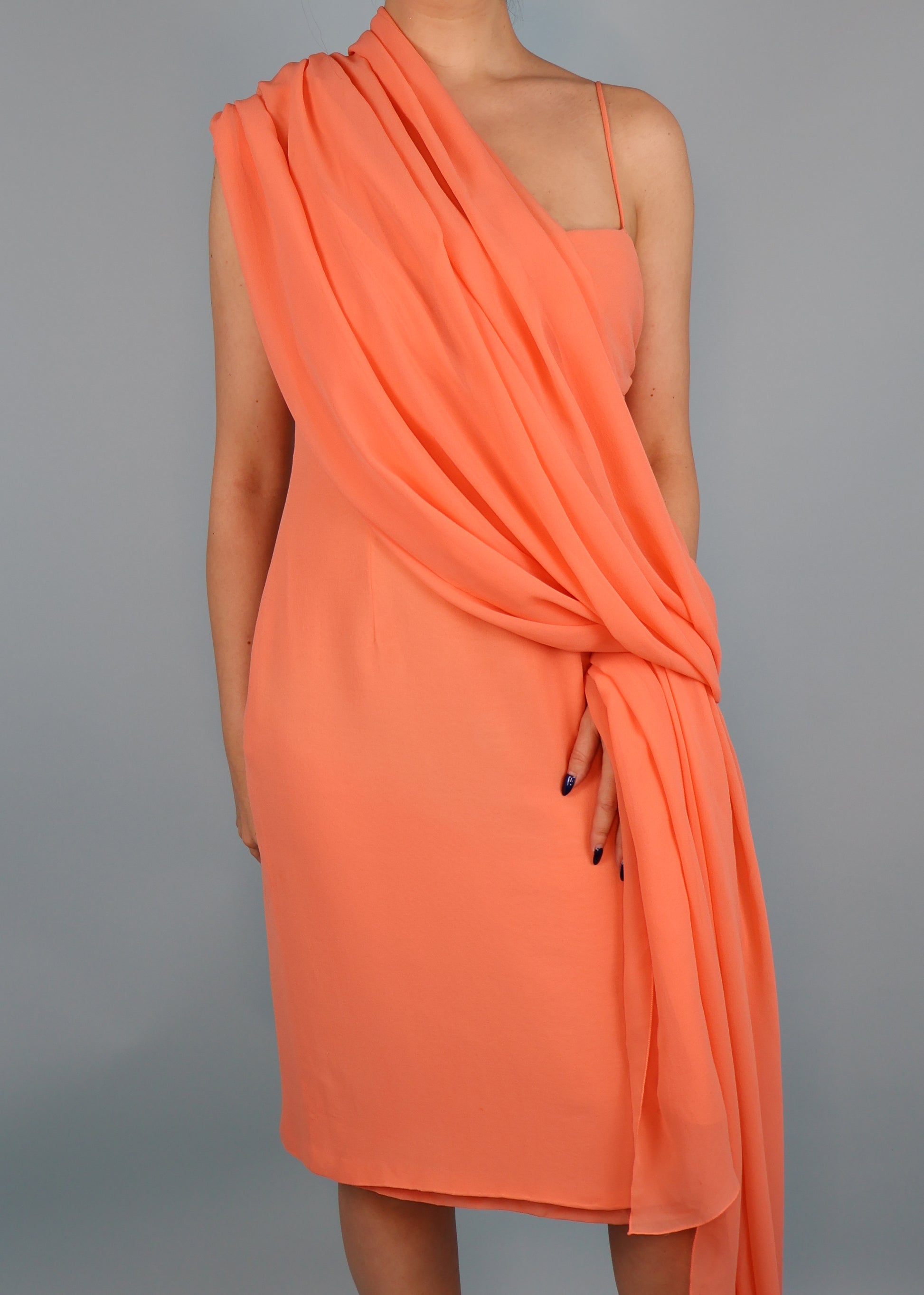 Givenchy Haute Couture Spring 1997 Peach Asymmetric Silk Dress & Shawl