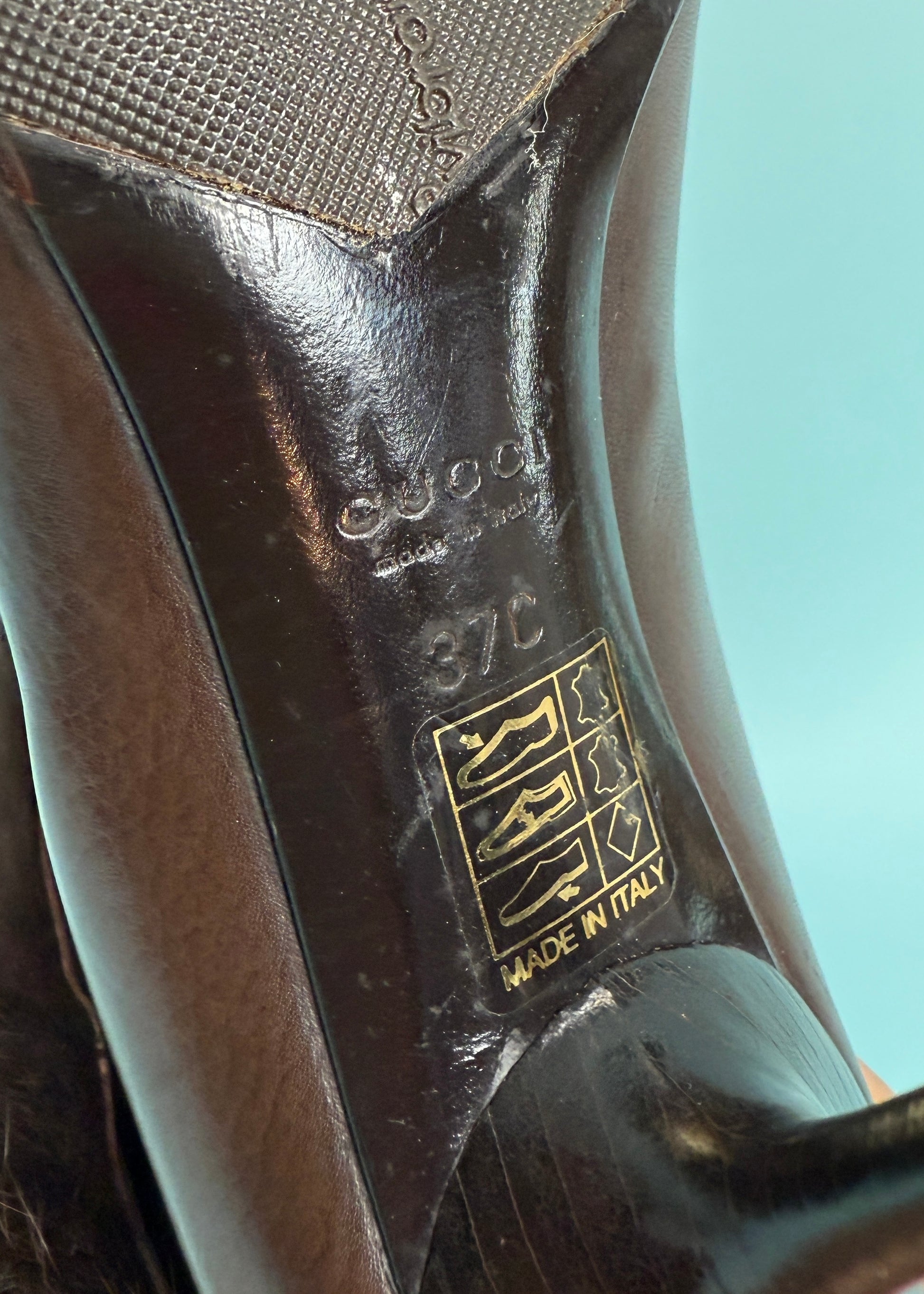Gucci 1990s Brown Leather Fur Trim Heeled Boots