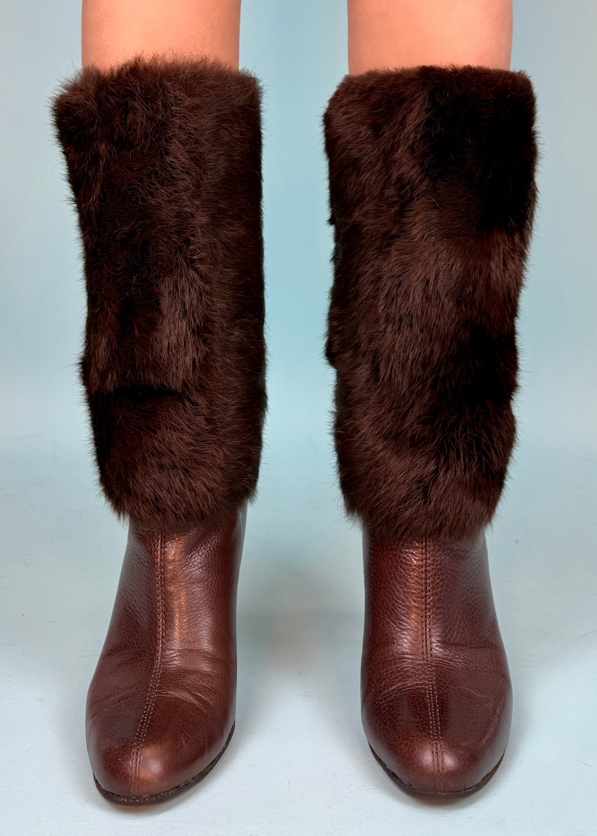 Brown leather fur trimmed boots