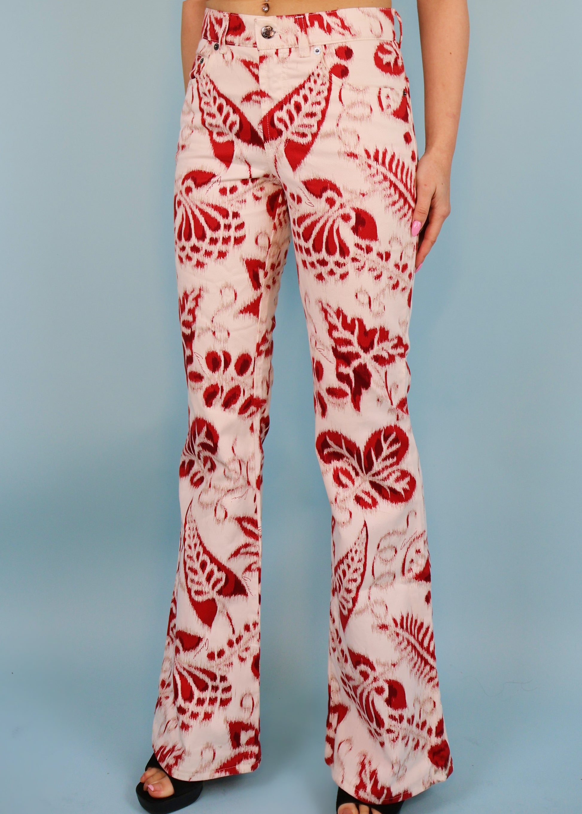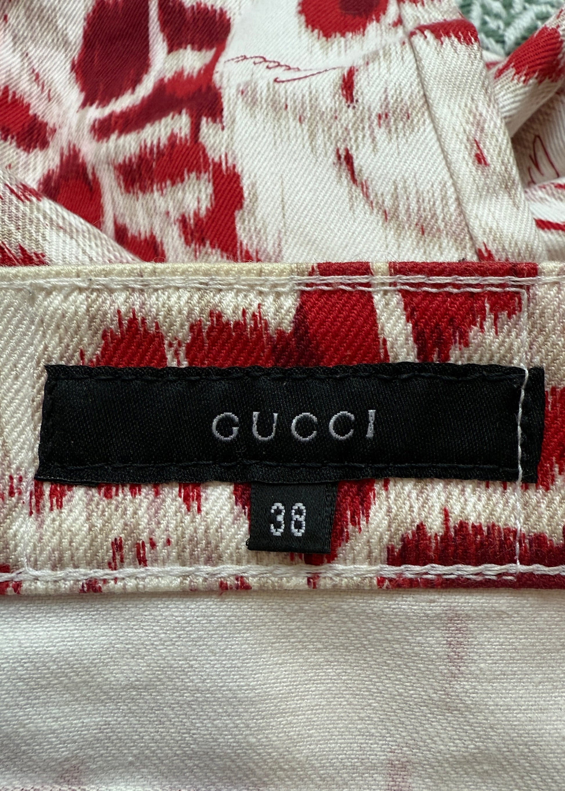 Gucci Spring 2000 Runway Red & White Floral Flared Jeans