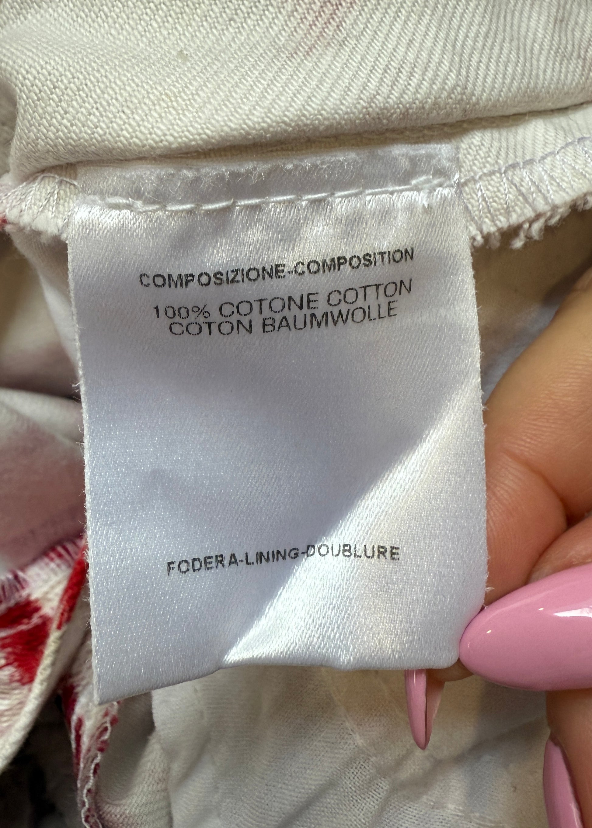 Red & white floral print jeans