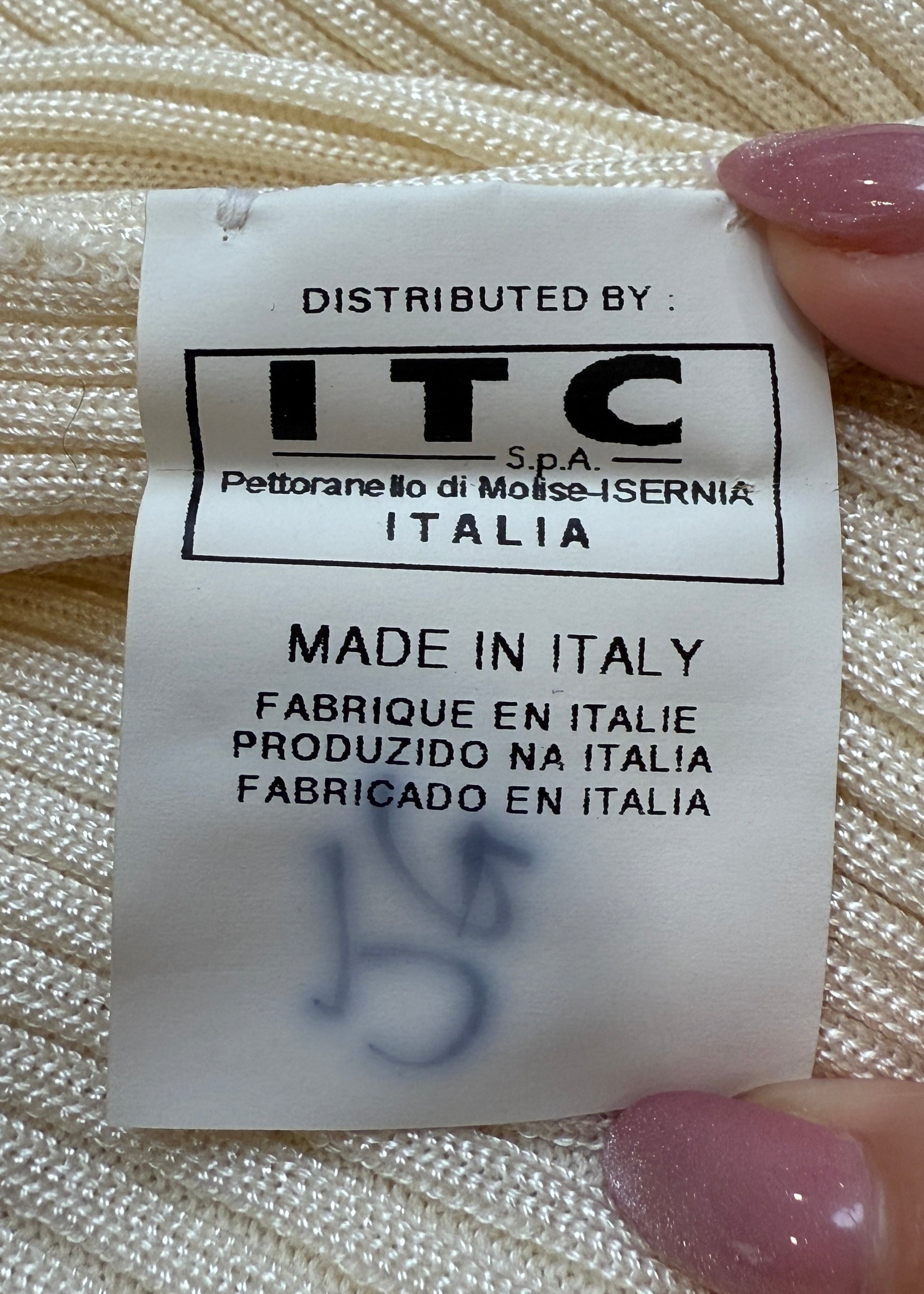 John Galliano Cream Floral Embroidered Knit High Neck Sweater Top