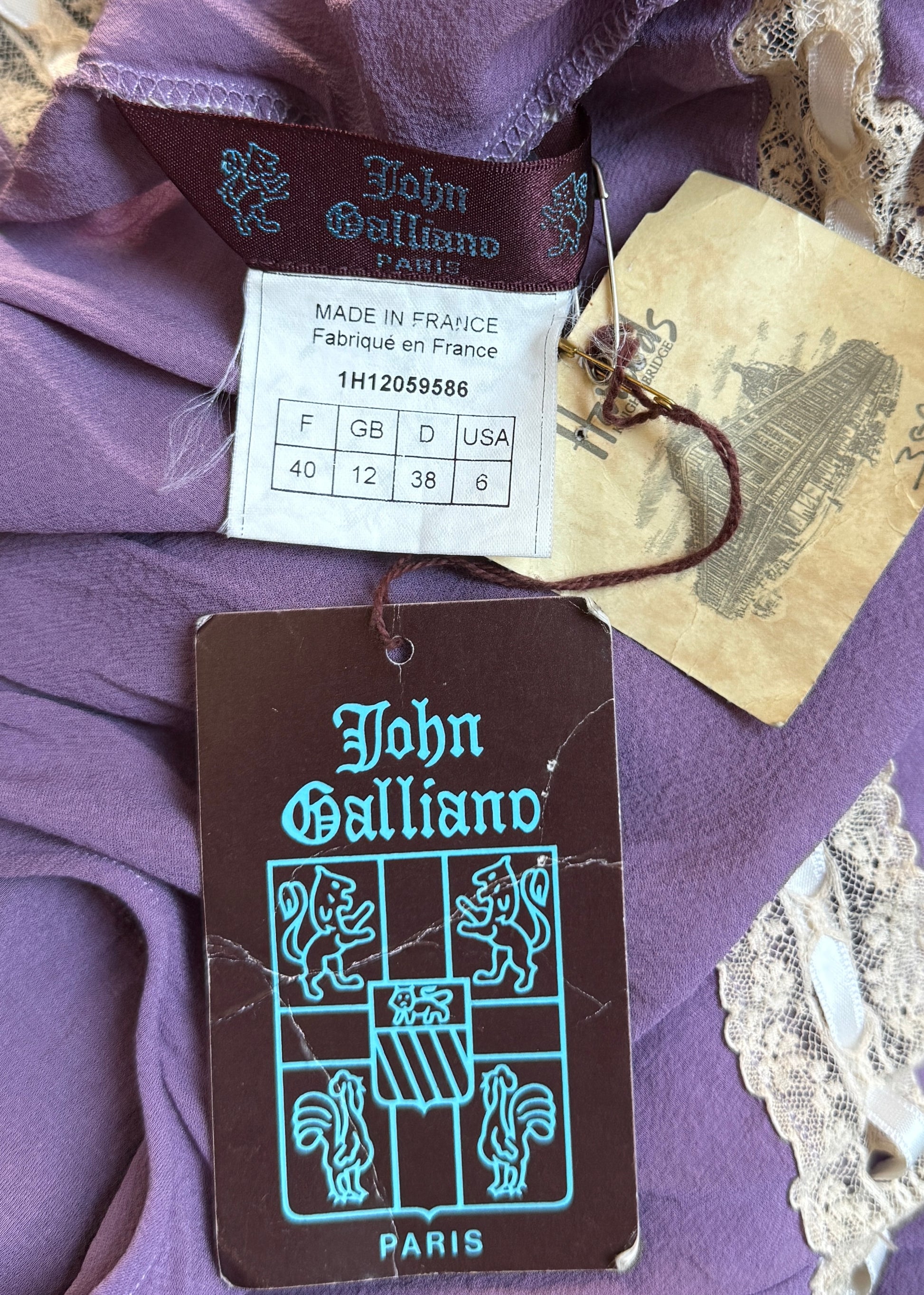 John Galliano Fall 2001 Purple Silk Chiffon & Lace Camisole Top