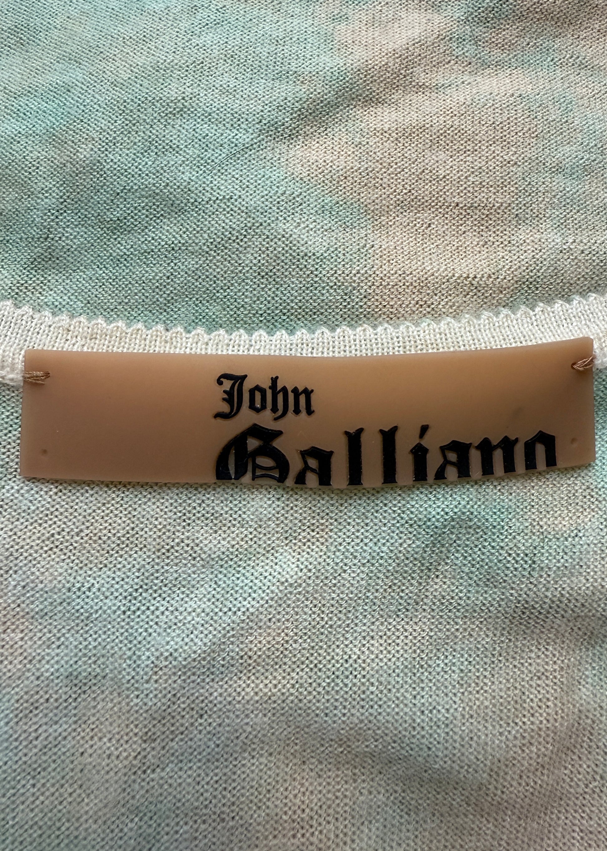 John Galliano Fall 2003 Mint Green & Gold Pattern Cashmere Knit Tank Top & Cardigan Twin Set