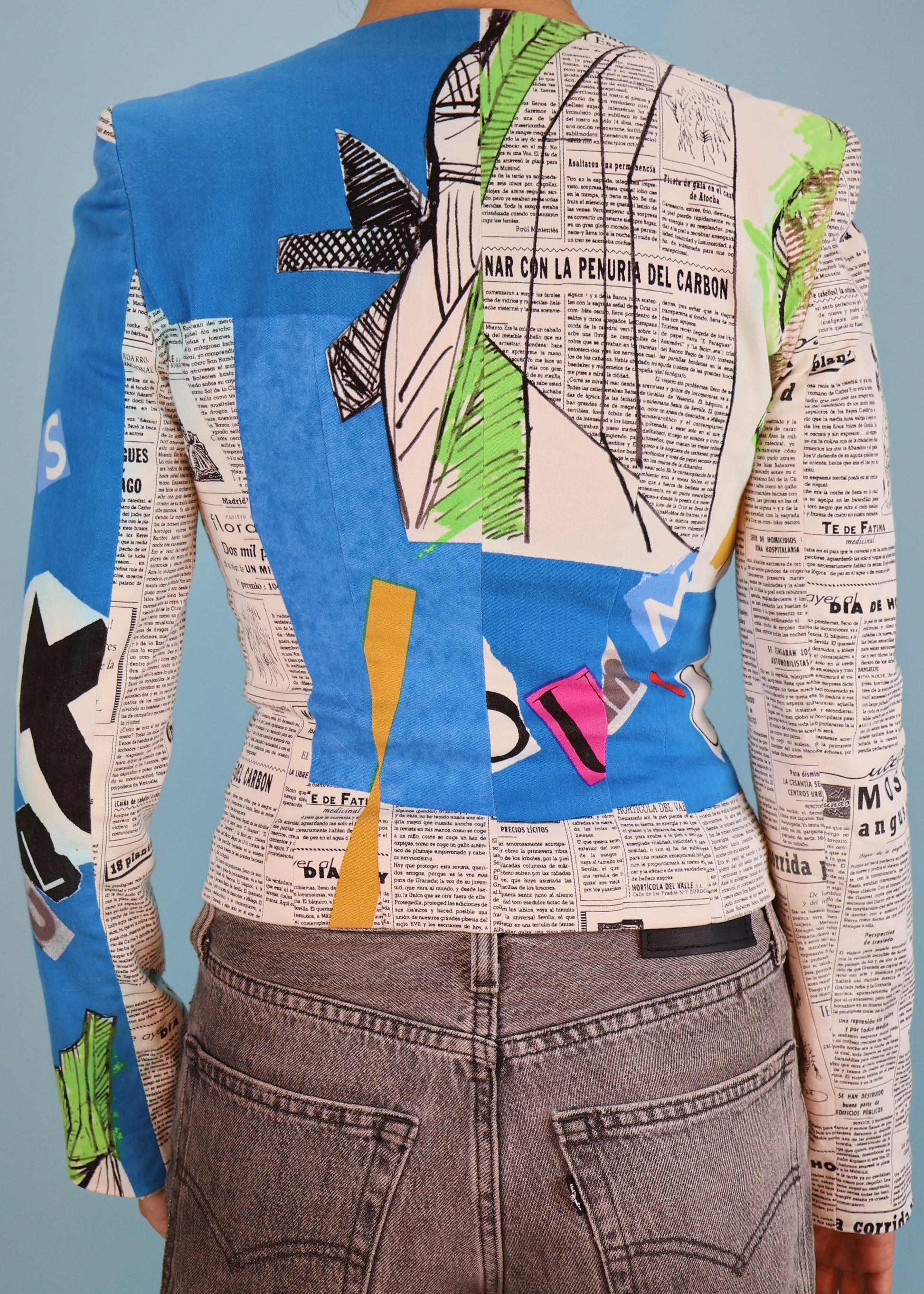 John Galliano Spring 2001 Newspaper & Abstract Printed Jacket