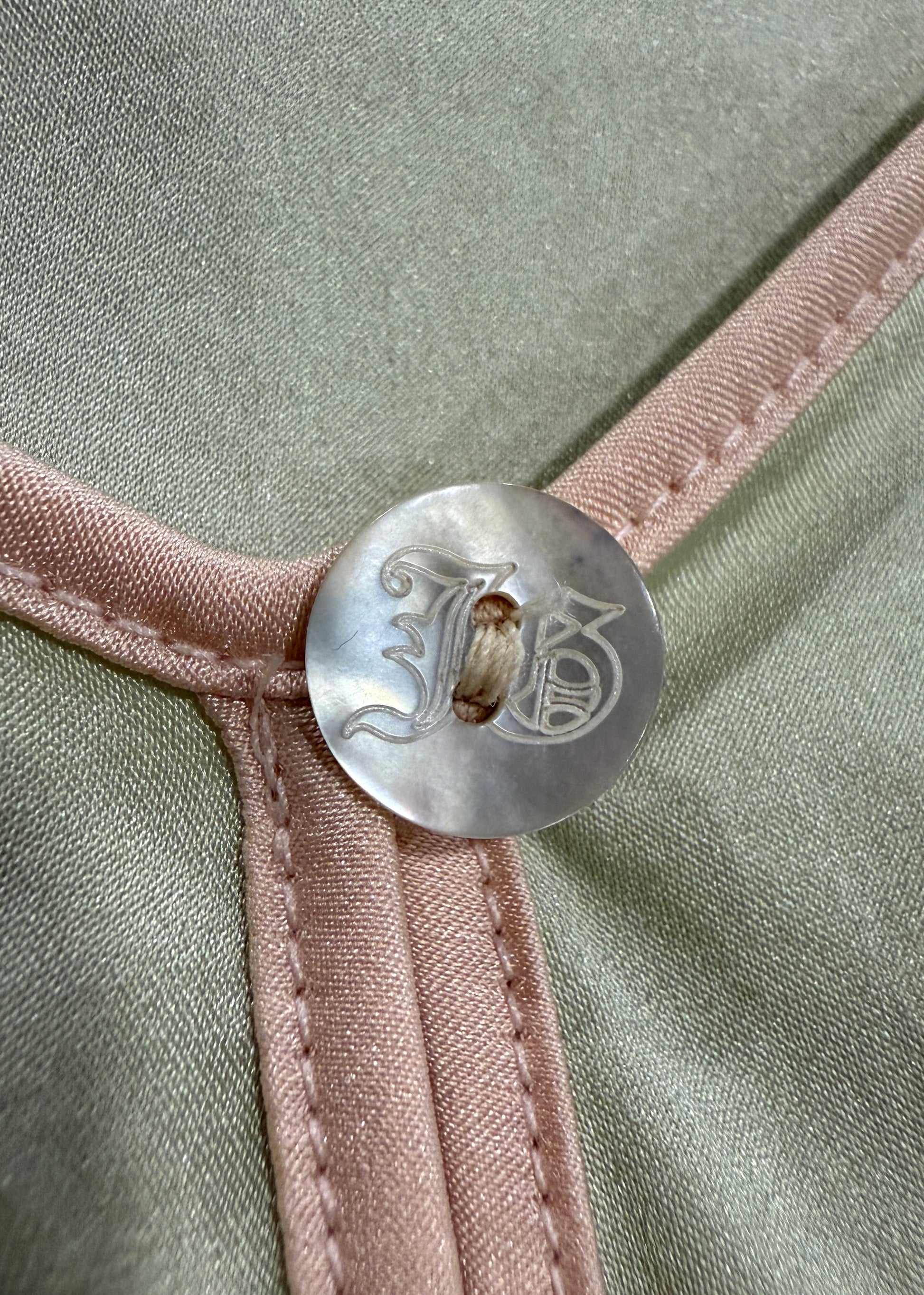 John Galliano Spring 2003 Mint Green Silk Satin Floral Cross Stitch Mini Dress