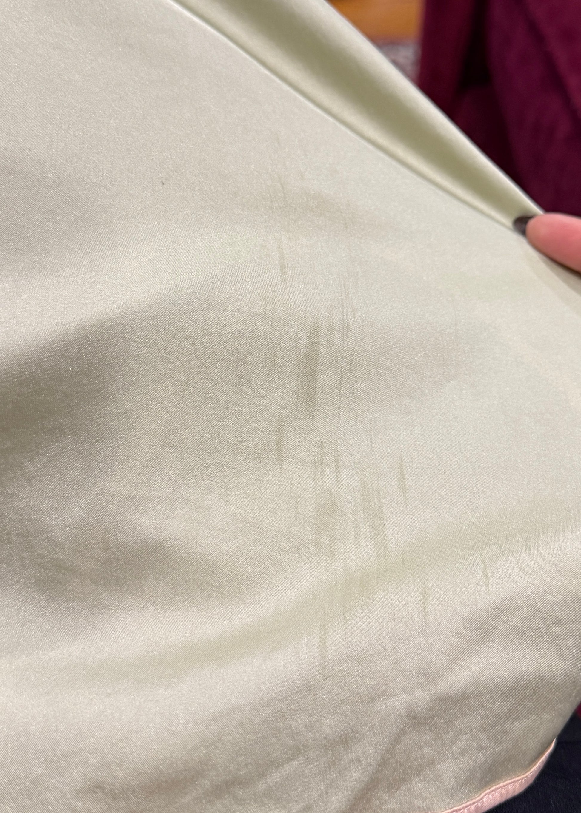 Missing John Galliano brand label. Some faint marks on lower skirt, only visible in some light