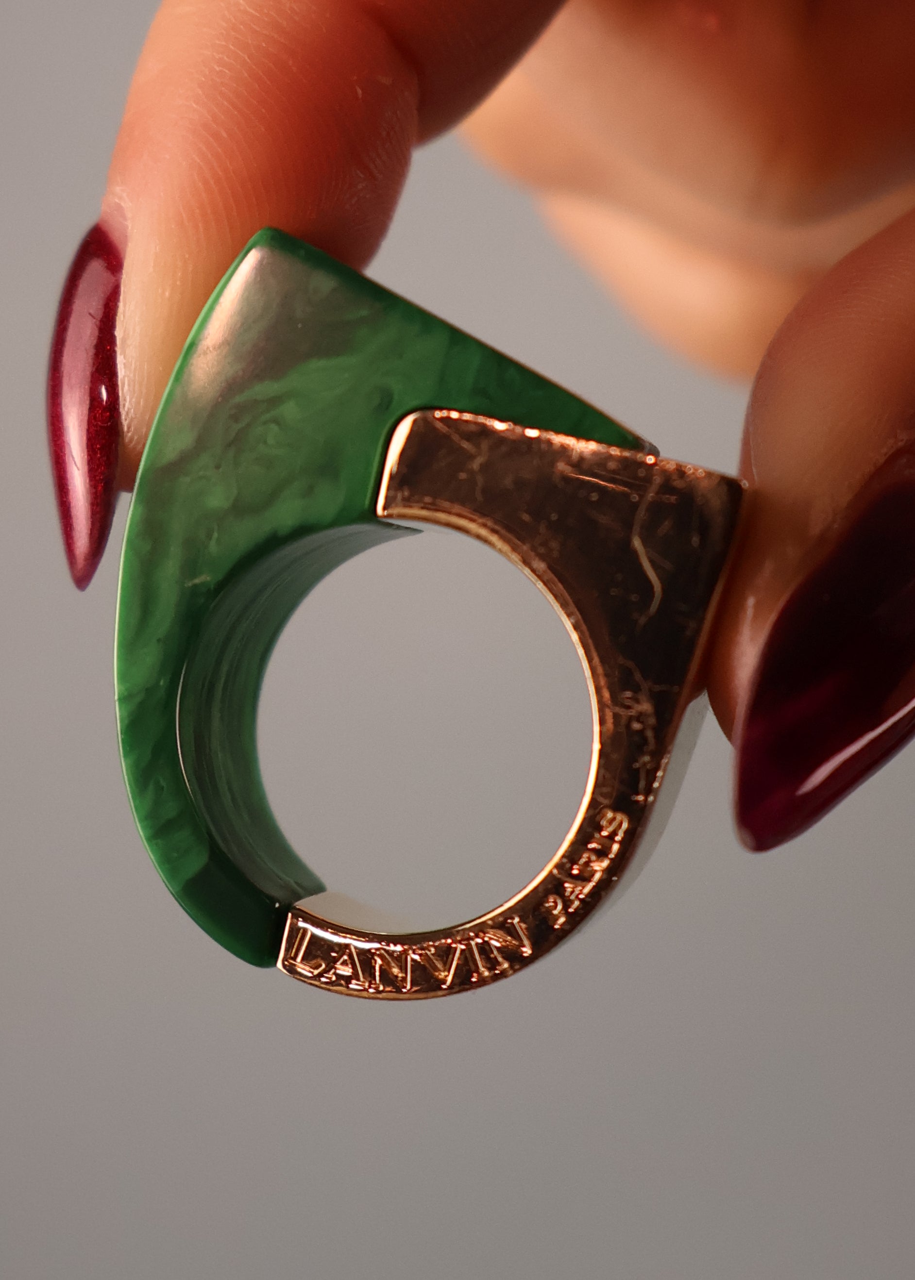 Lanvin Green & Gold Geometric Ring