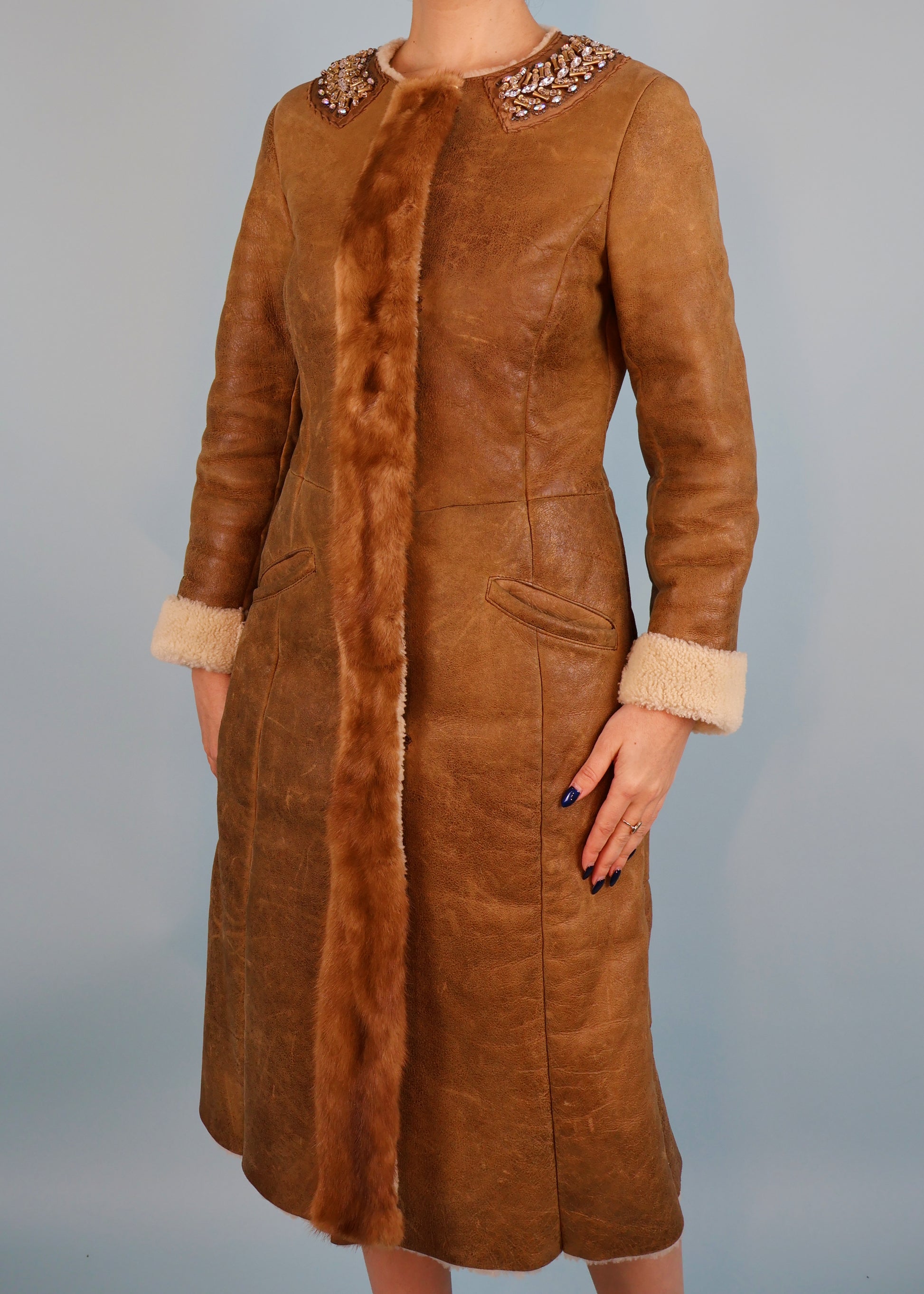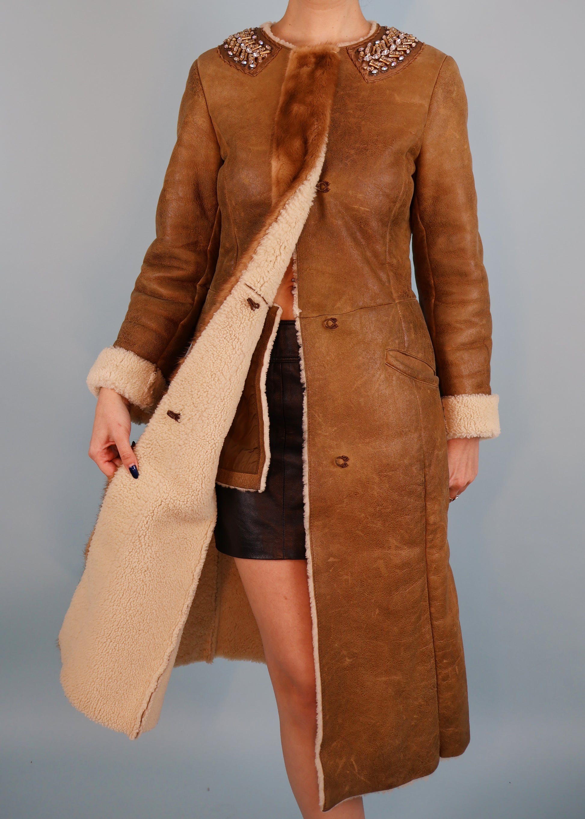 Prada Fall 2004 Runway Shearling & Mink Trim Crystal Embellished Coat