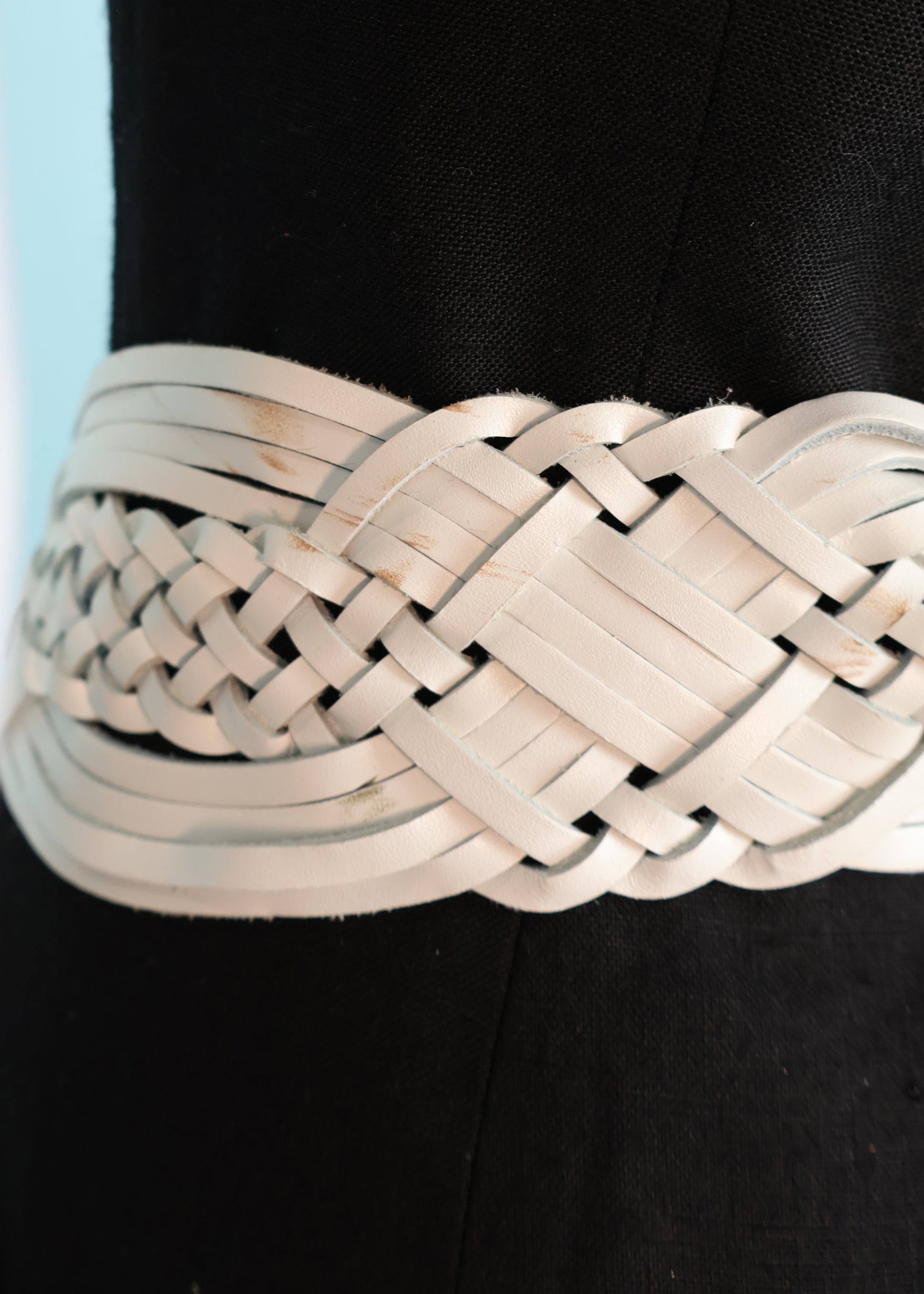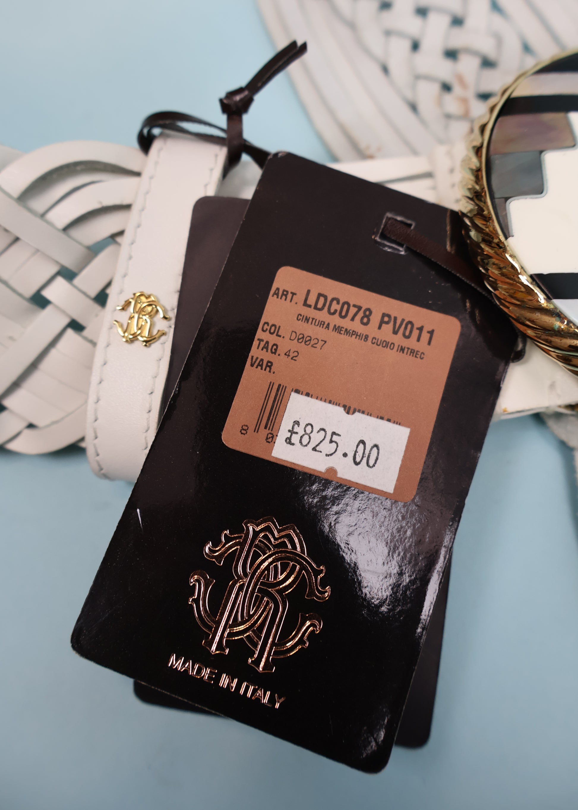 Roberto Cavalli Mother of Pearl Buckle White Woven Leather Belt