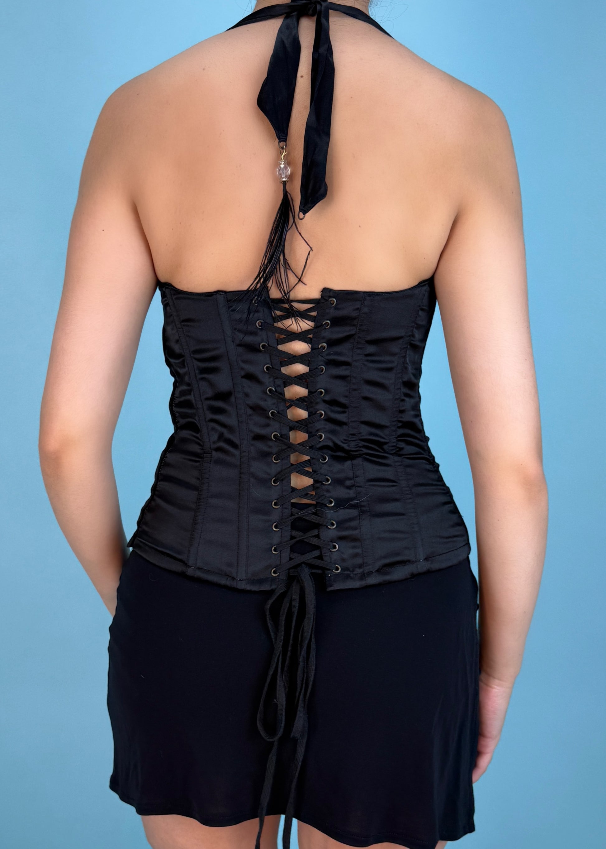 Roberto Cavalli Spring 2004 Black Silk Halter Corset Top