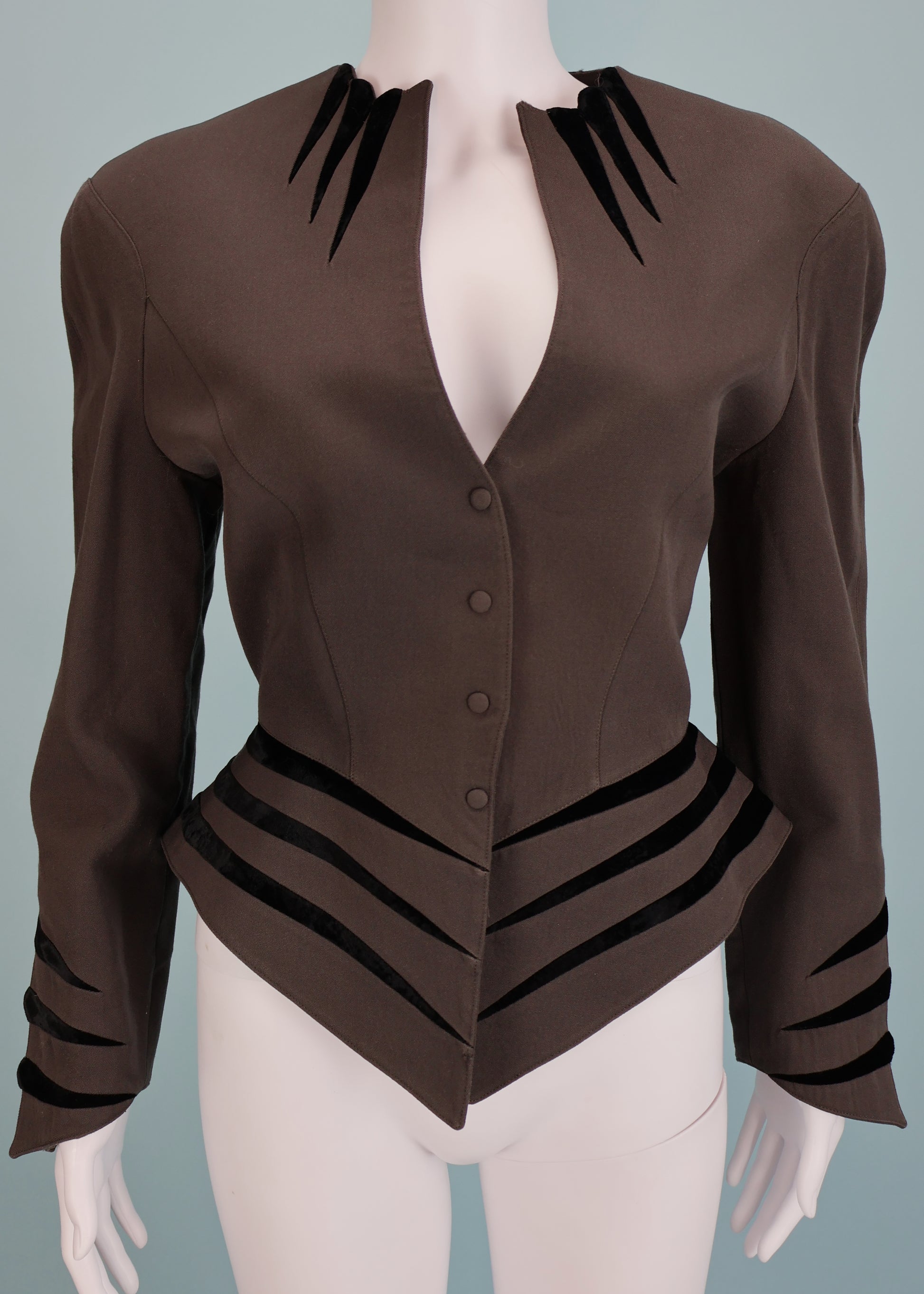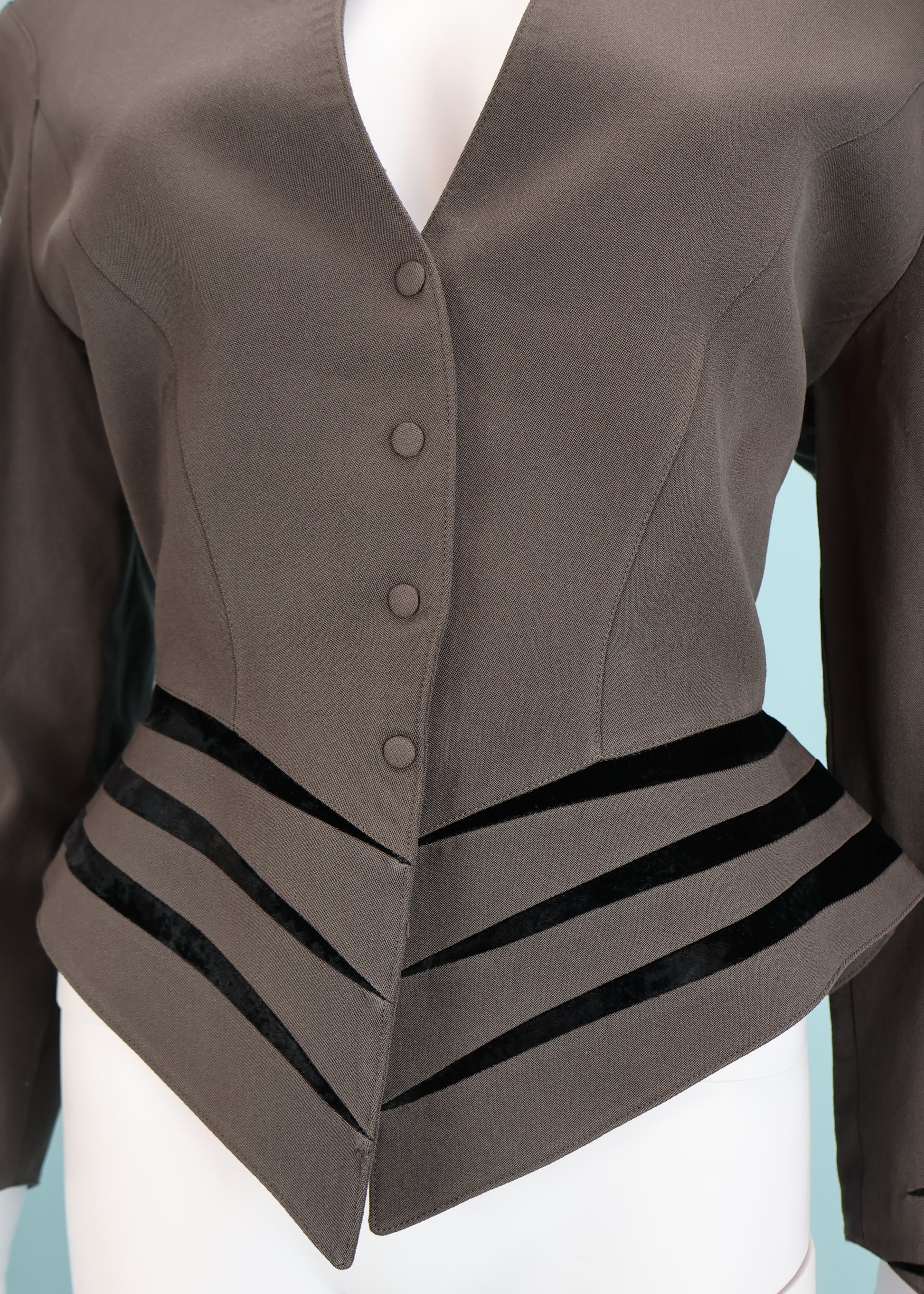 Thierry Mugler Fall 1990 Grey Velvet Stripe Jacket