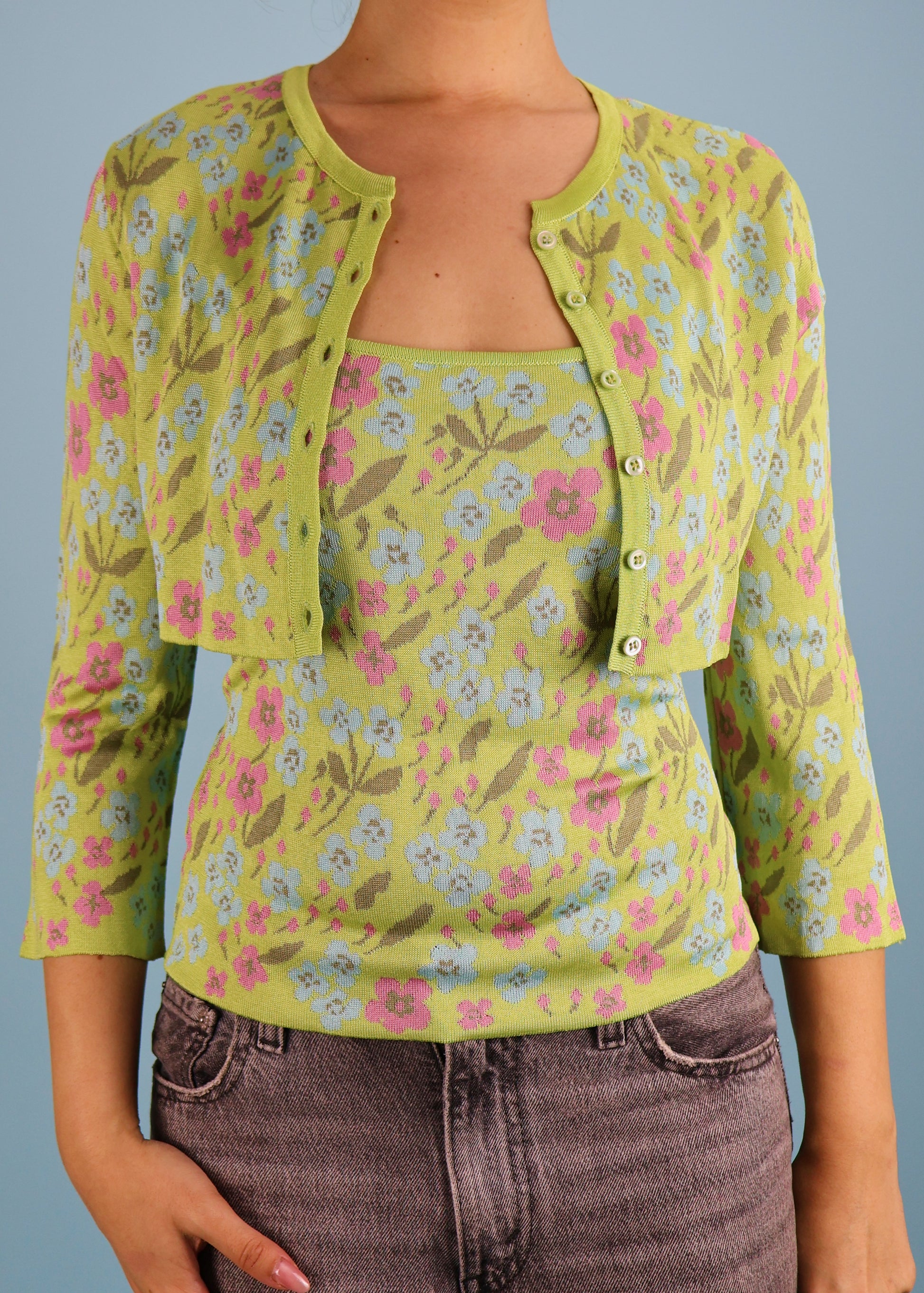 Valentino Green Floral Knit Cami Top & Cropped Cardigan Twin Set