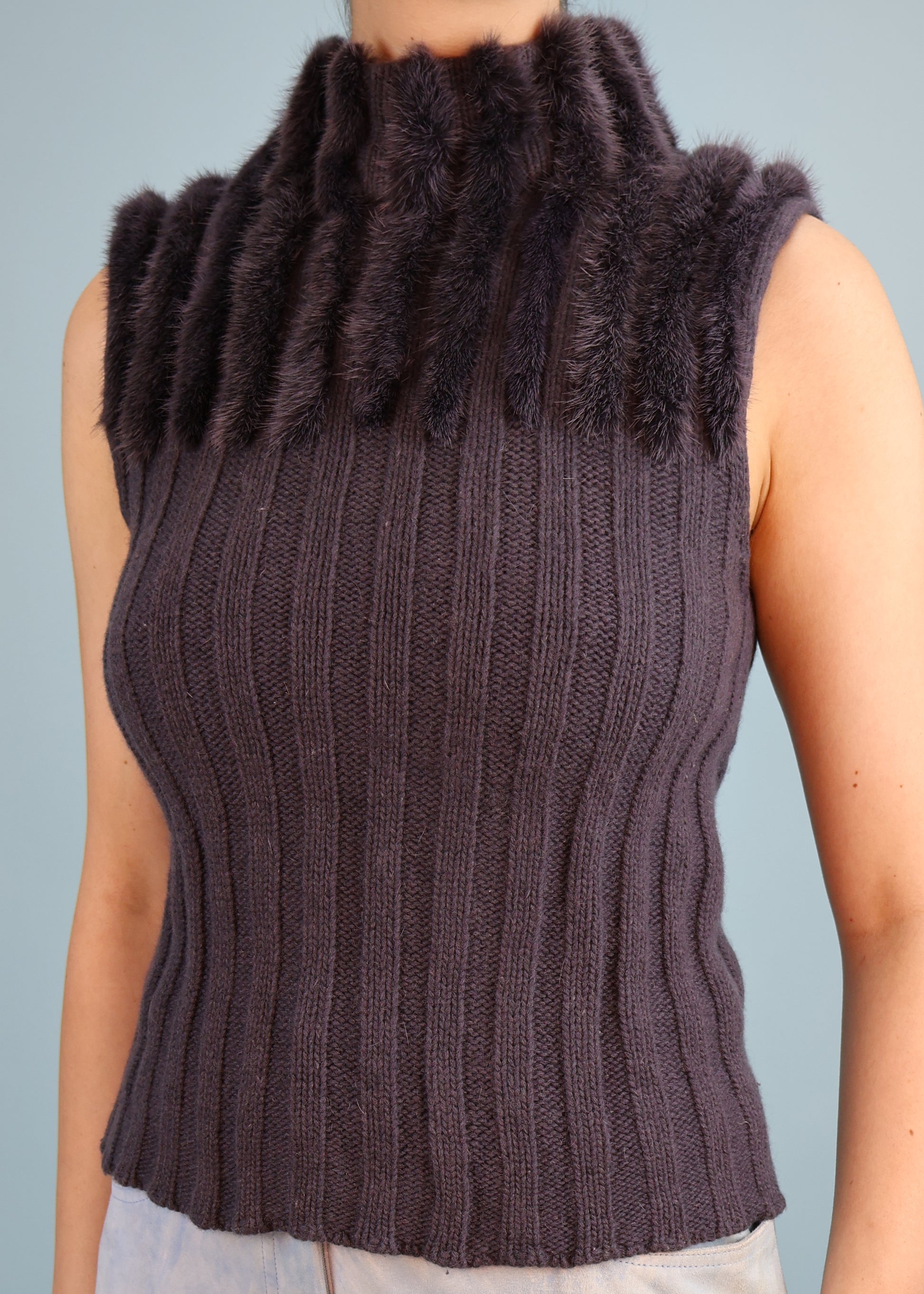 Valentino Grey Knit & Mink Fur Sleeveless Top