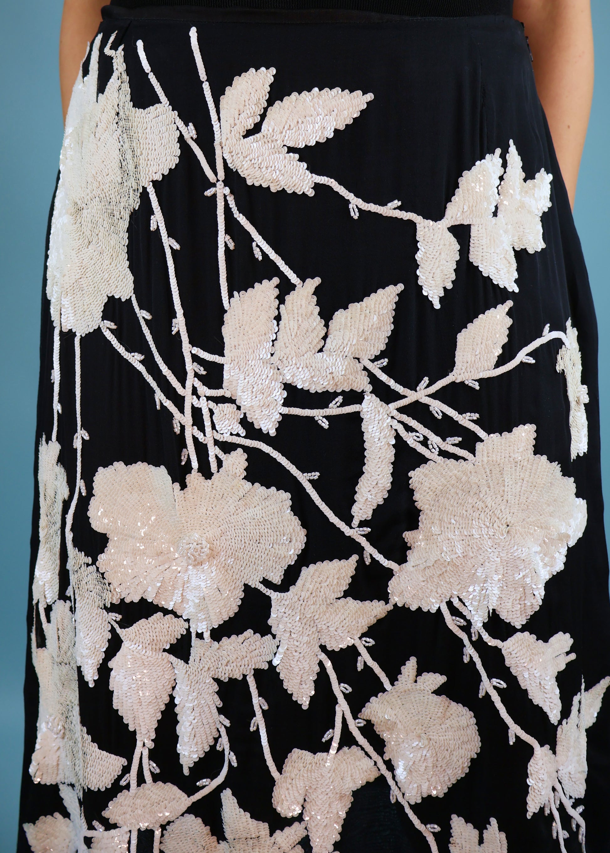 Valentino Spring 2001 Runway Black Silk & White Floral Sequin Embellished Skirt