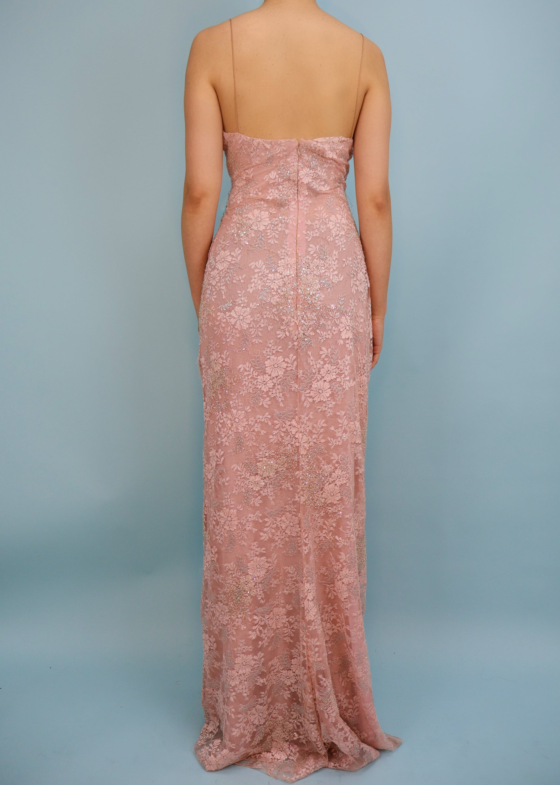 Vera Wang 2006 Sample Pink Embellished Lace Gown