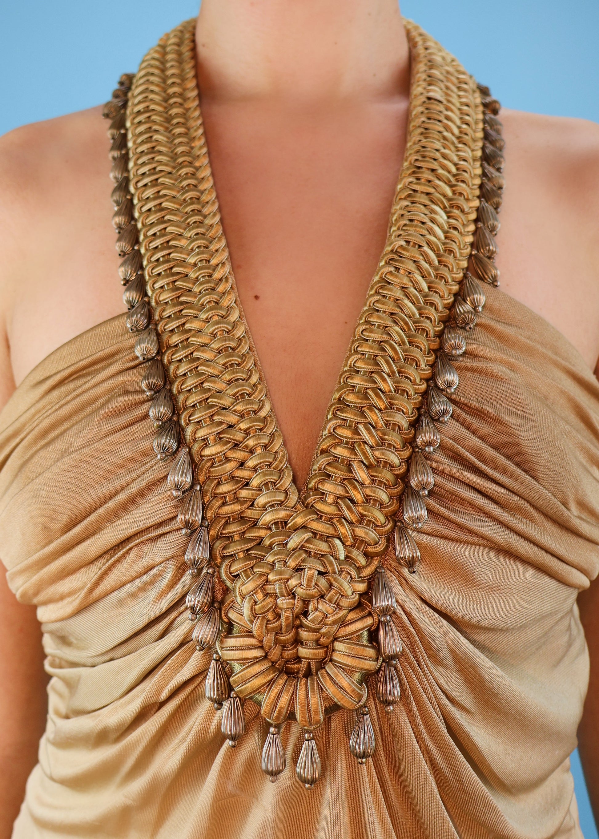 Versace Spring 2006 Runway Beige Bead Embellished Silk Halter Top