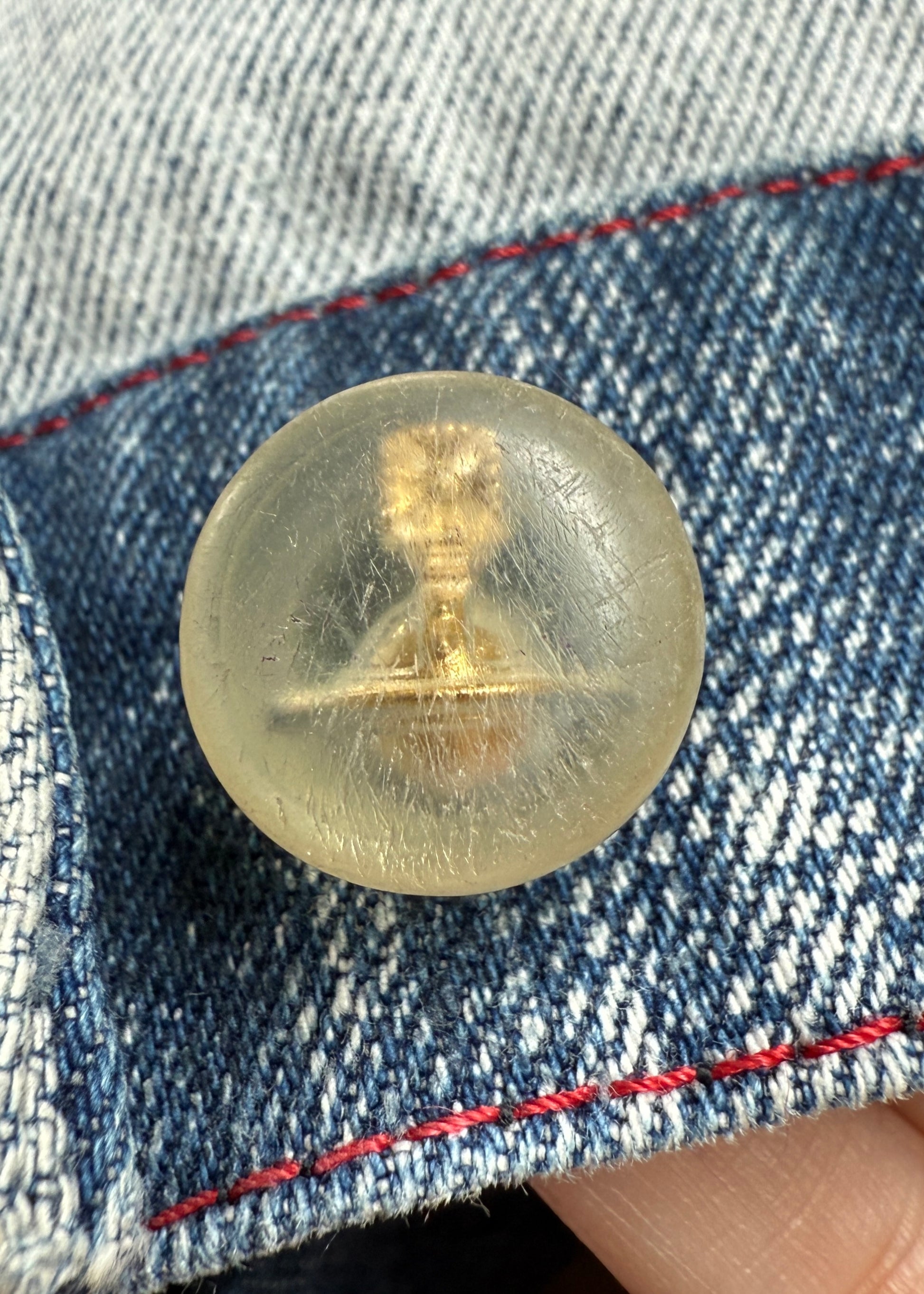 Buttons on the back waistband are a little scratched/cloudy. Otherwise in excellent condition