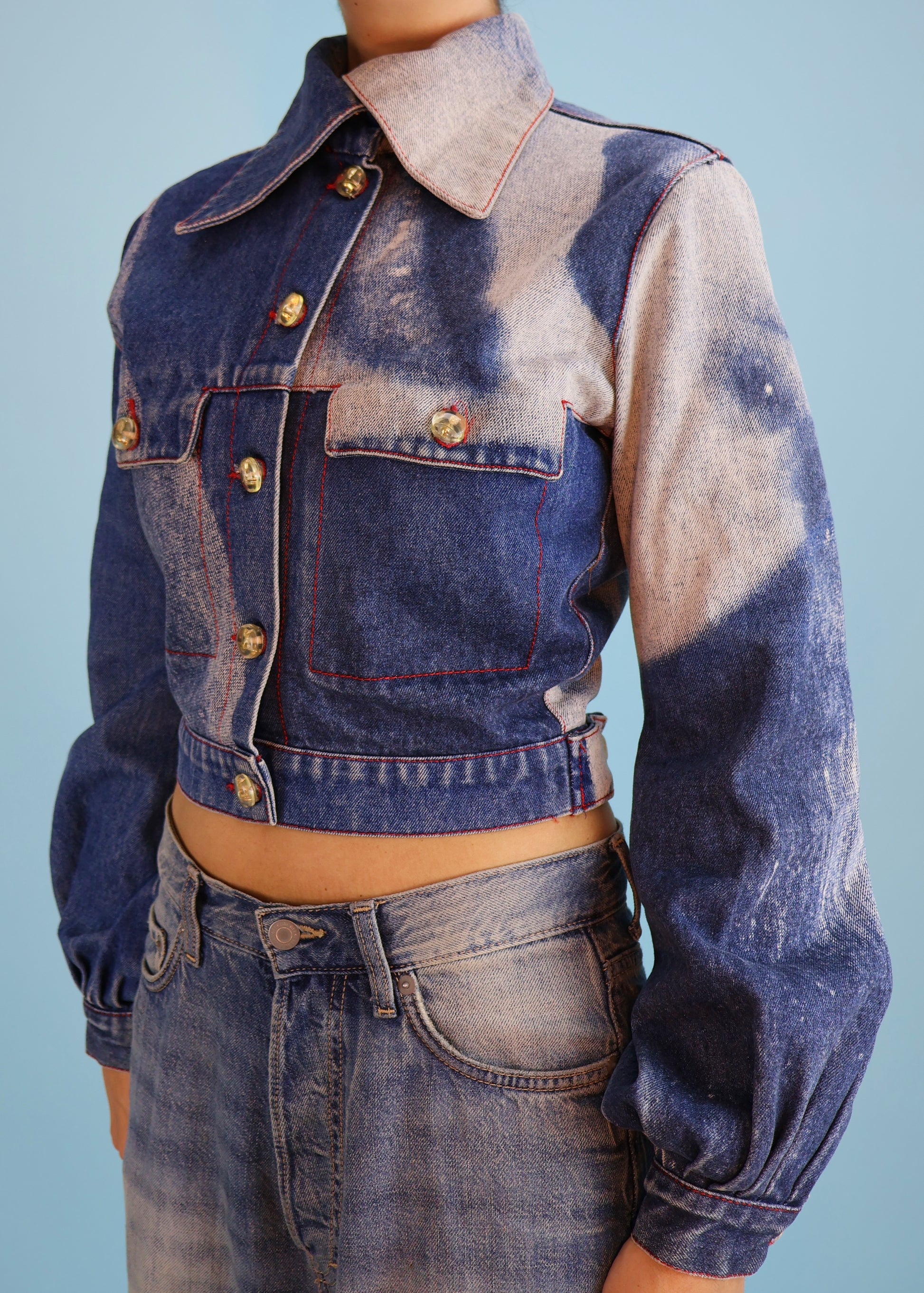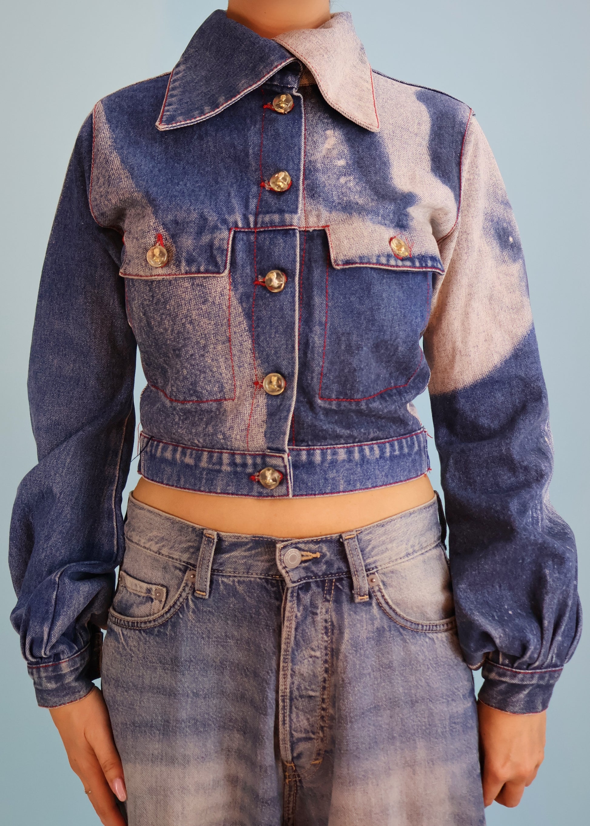 Vivienne Westwood Fall 1992 Runway Marlene Dietrich Face Print Denim Jacket