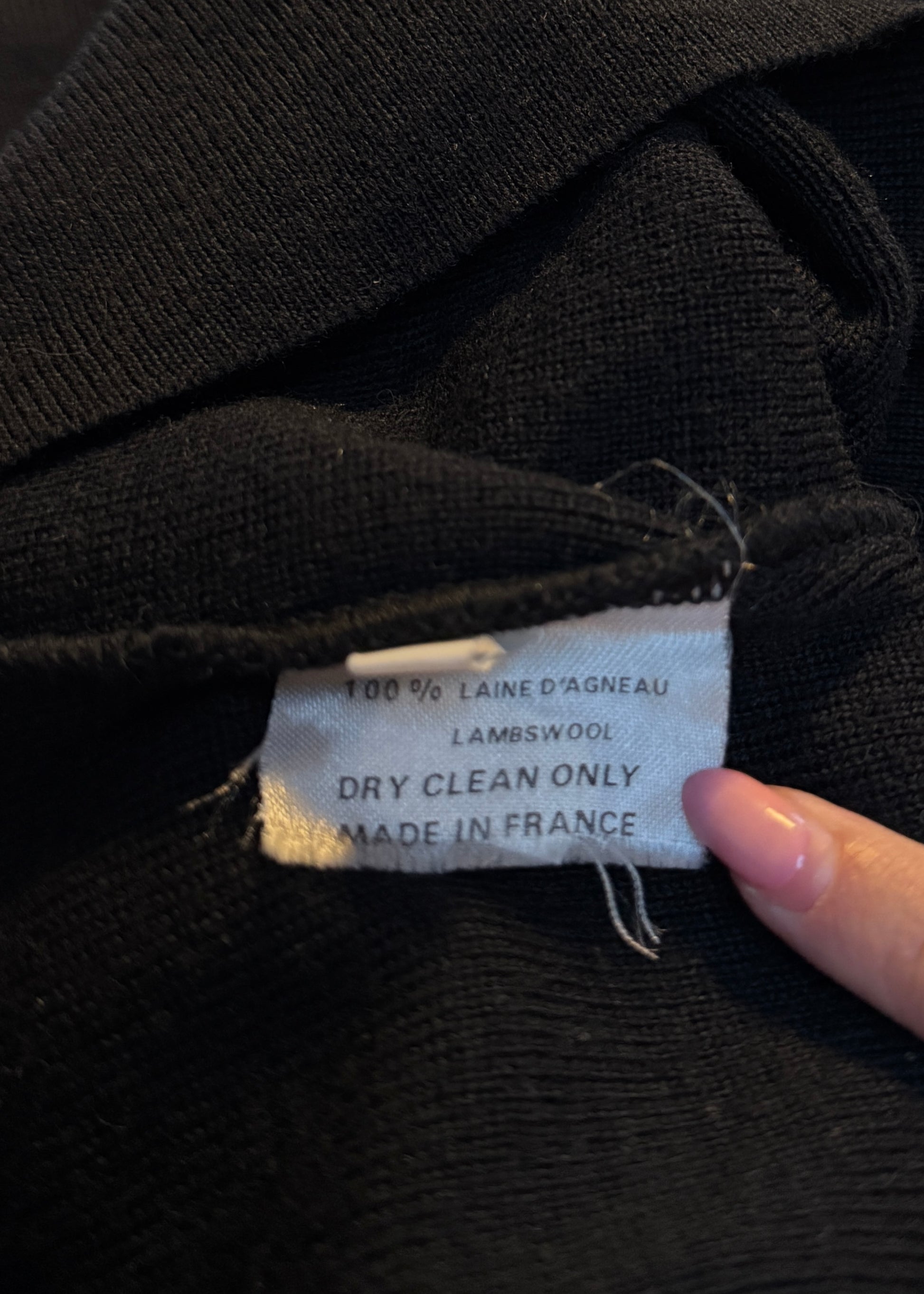 Black knitted sweater with ostrich feather trim neck & cuffs