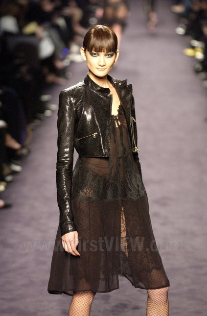 Yves Saint Laurent Fall 2003 Runway Black Leather Cropped Jacket
