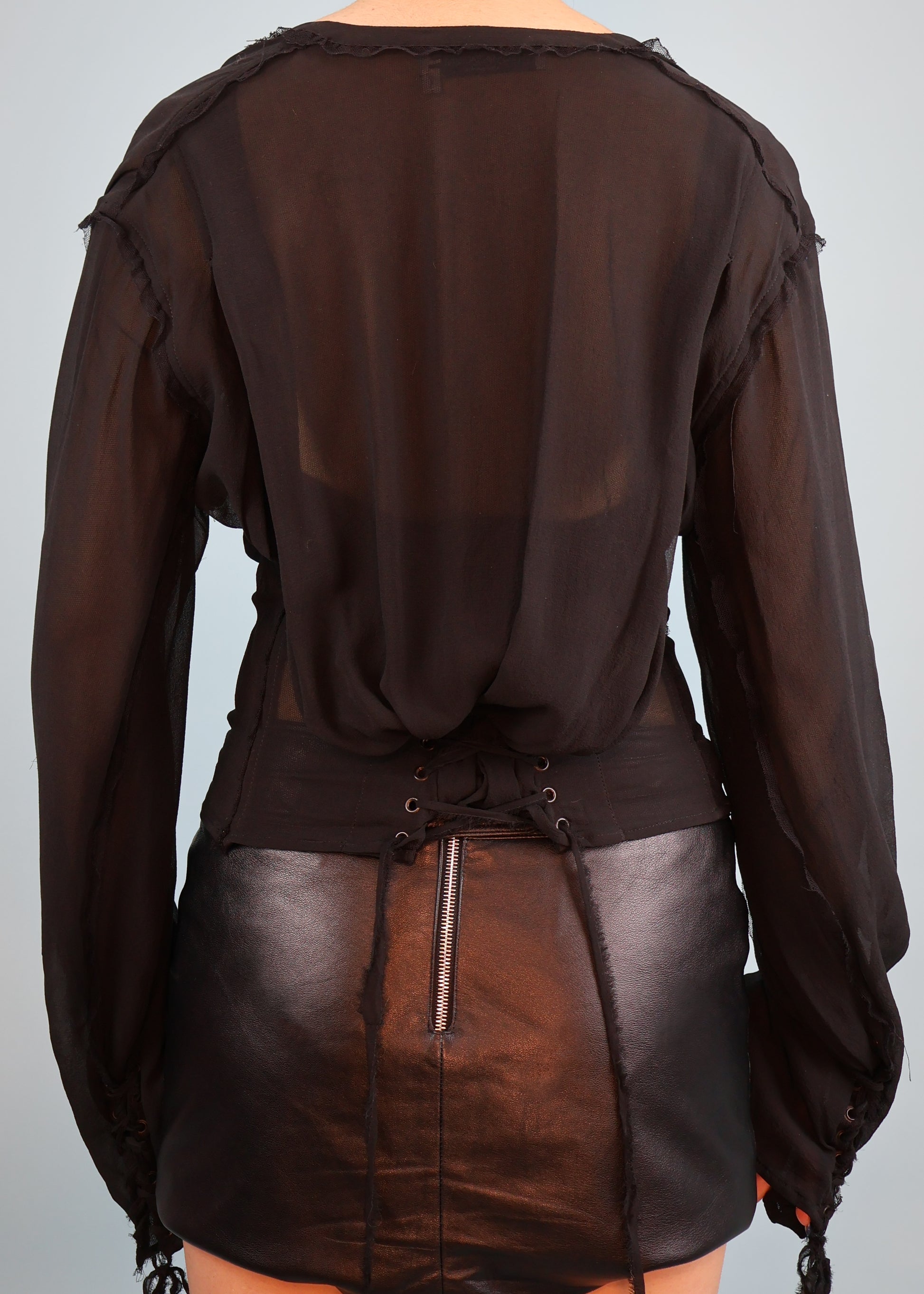 Black silk corset style lace up blouse